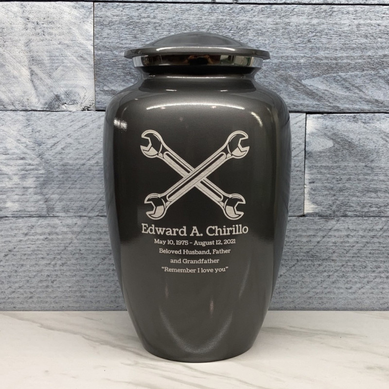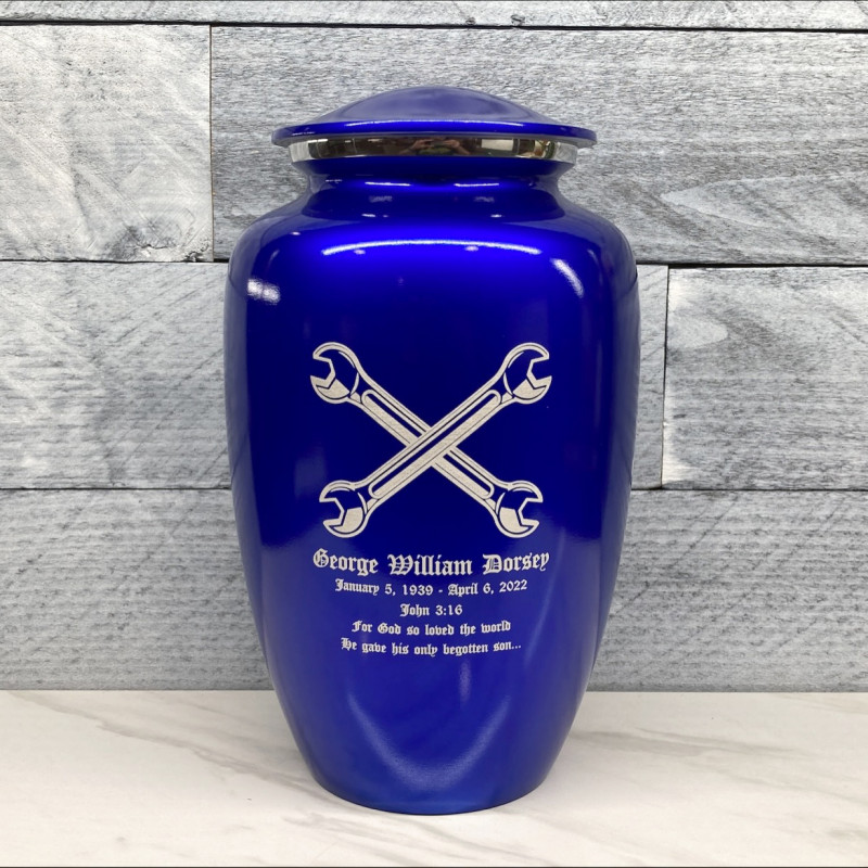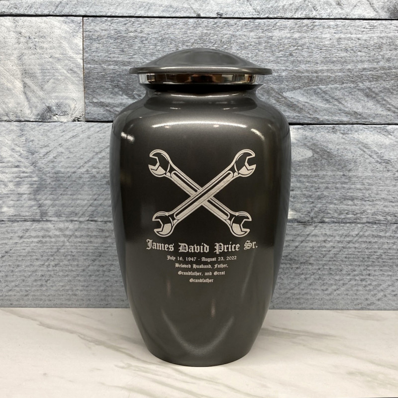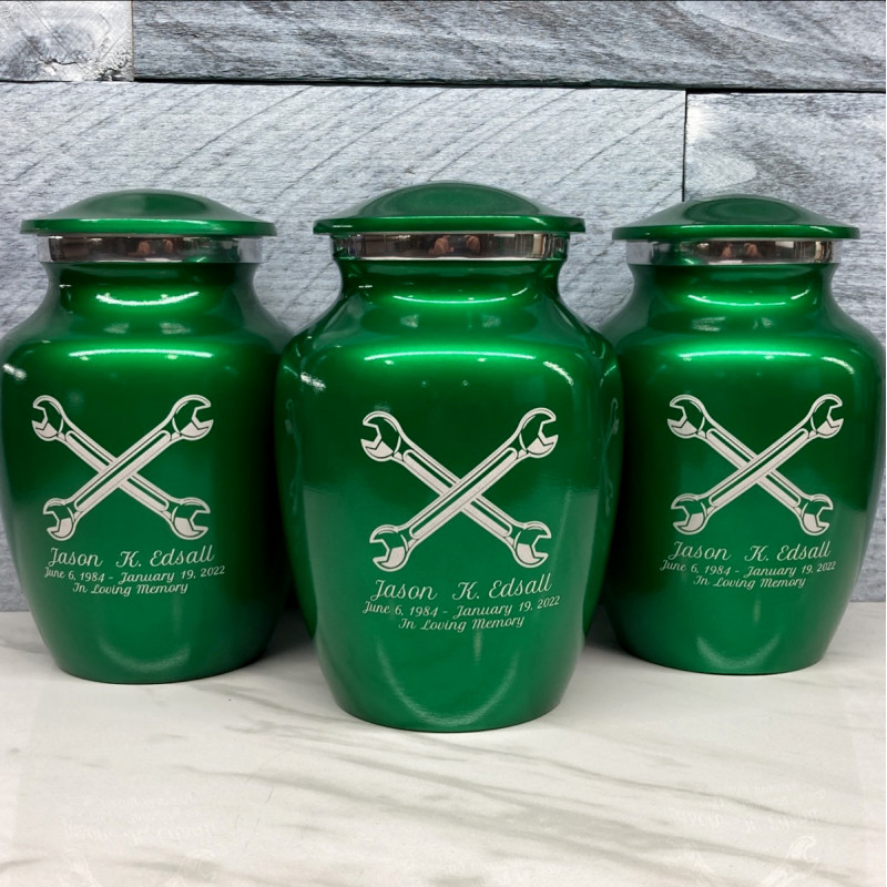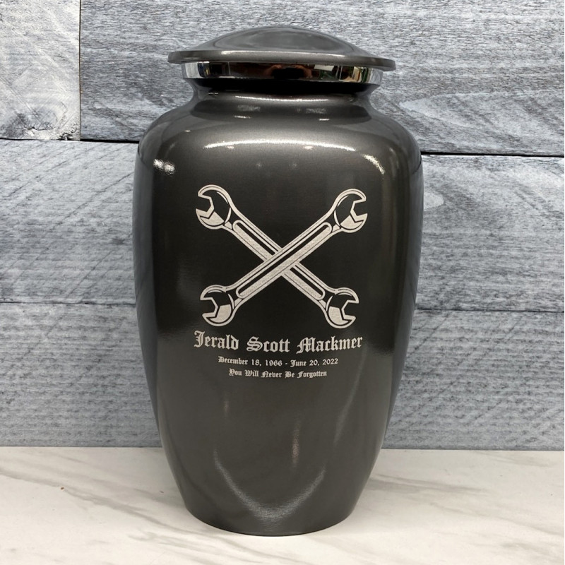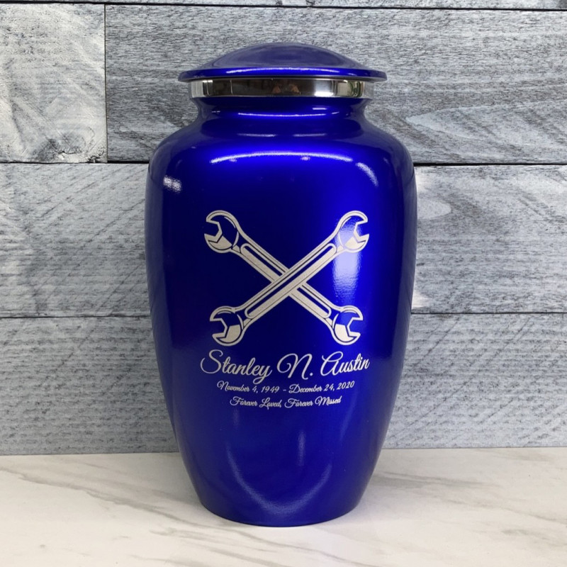 Mechanic Wrench Sharing Urn - Midnight Blue Mechanic Wrench Sharing Urn - Gunmetal Gray Mechanic Wrench Sharing Urn - Purple Luster Mechanic Wrench Sharing Urn - Shamrock GreenSizes