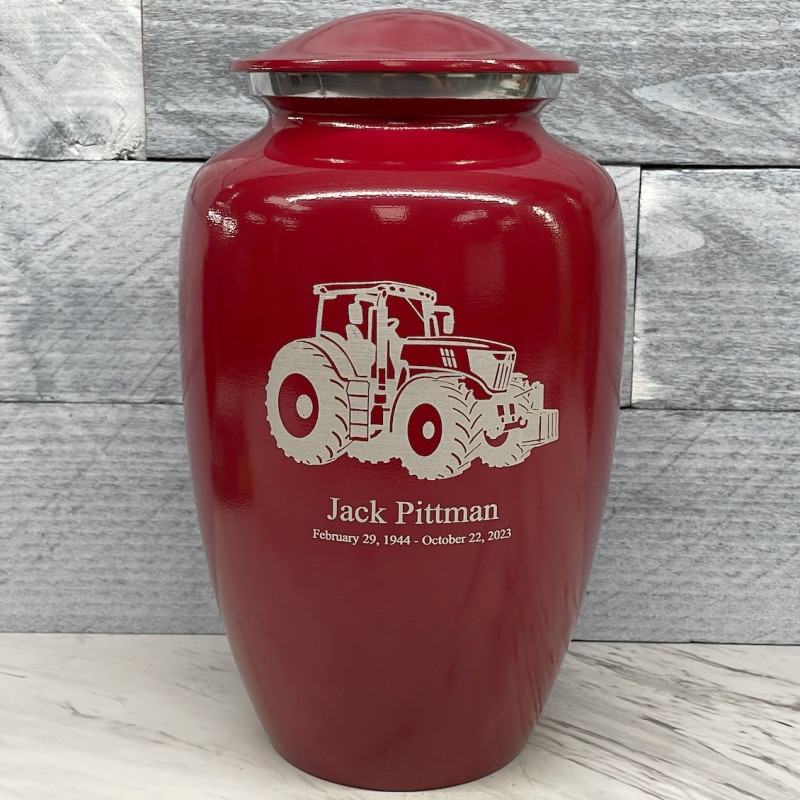 Modern Tractor Cremation Urn - Midnight Blue Modern Tractor Cremation Urn - Gunmetal Gray Modern Tractor Cremation Urn - Purple Luster Modern Tractor Cremation Urn - Shamrock GreenSizes