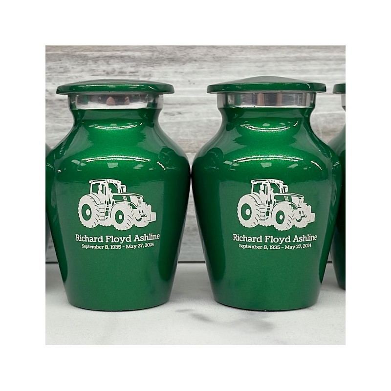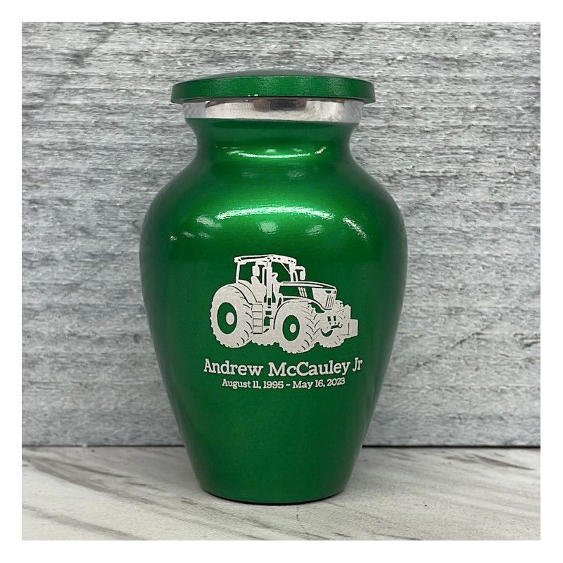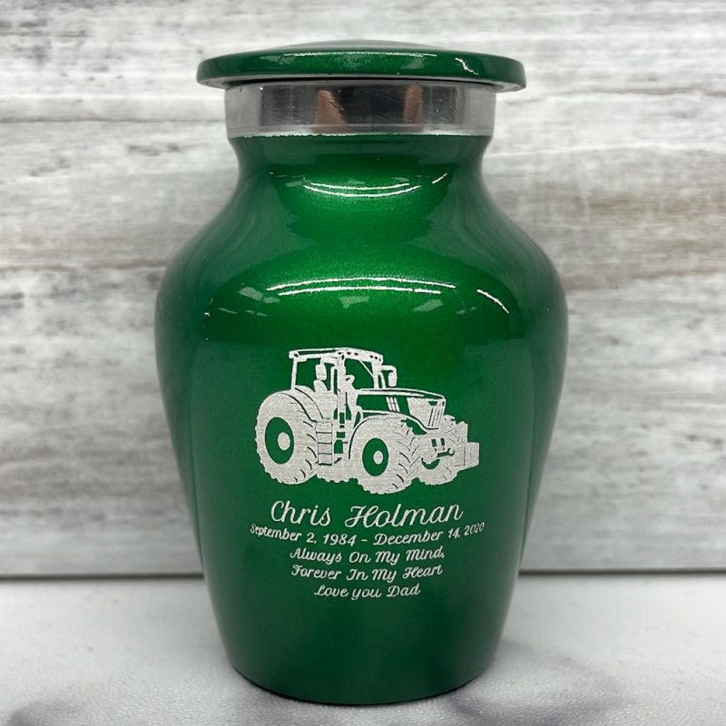 Modern Tractor Keepsake Urn - Midnight Blue Modern Tractor Keepsake Urn - Gunmetal Gray Modern Tractor Keepsake Urn - Purple LusterSizes