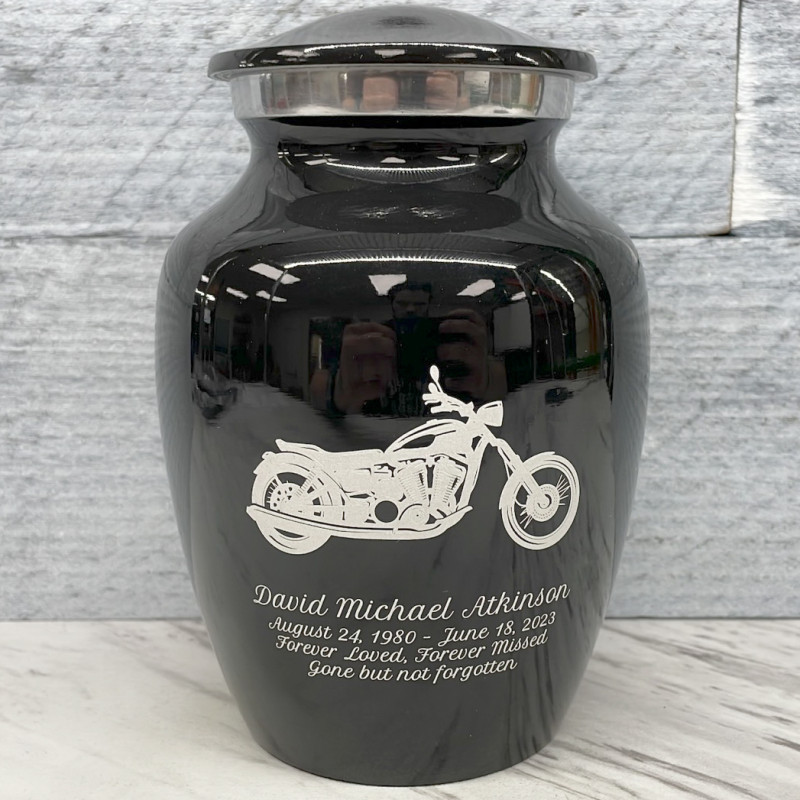 Motorcycle Sharing Urn - Midnight Blue Motorcycle Sharing Urn - Gunmetal Gray Motorcycle Sharing Urn - Purple Luster Motorcycle Sharing Urn - Shamrock Green Motorcycle Sharing Urn - Ruby RedMotorcycle Sharing Urn - Jet Black