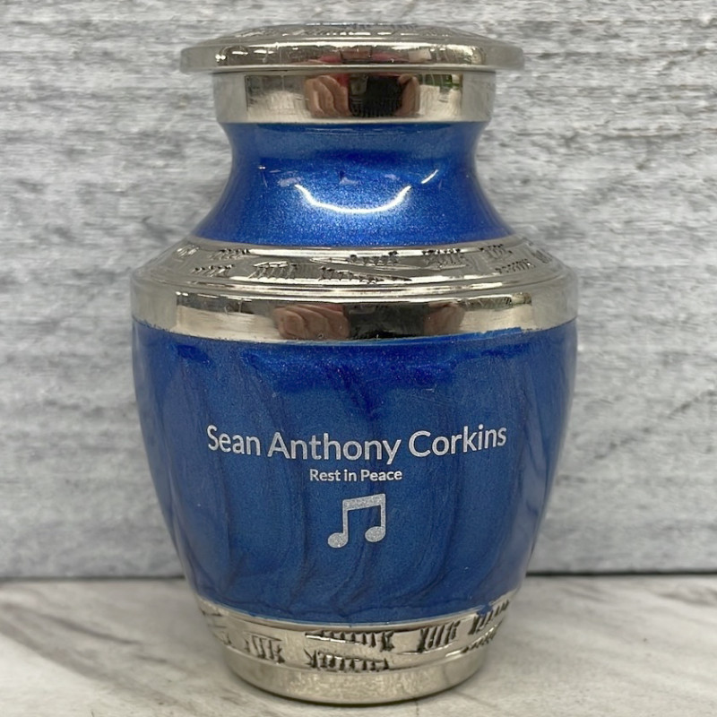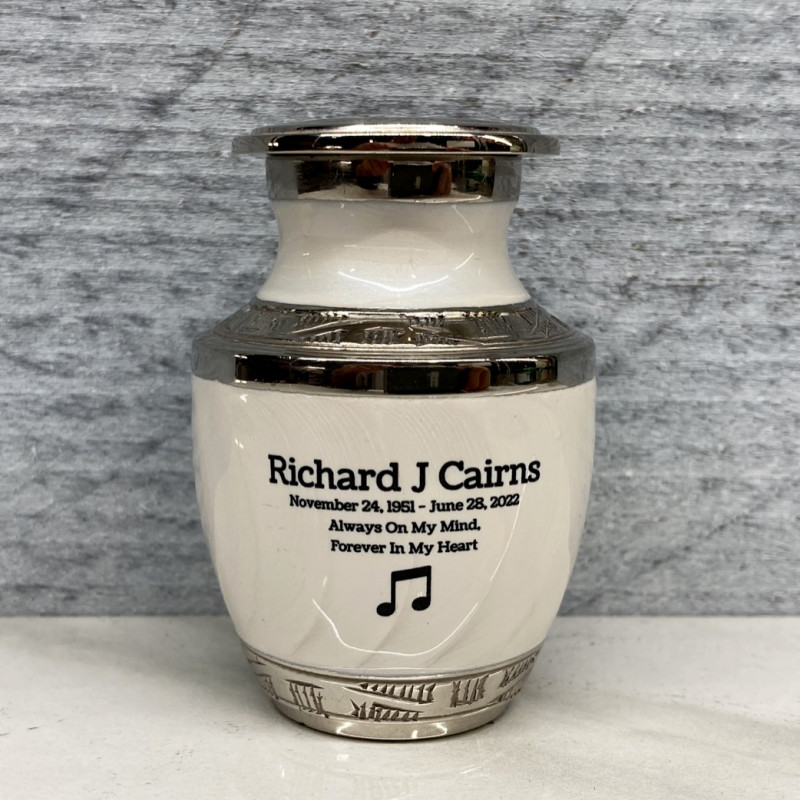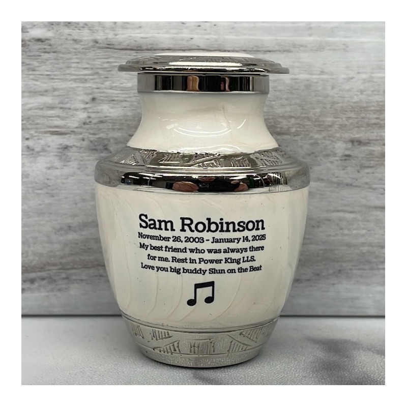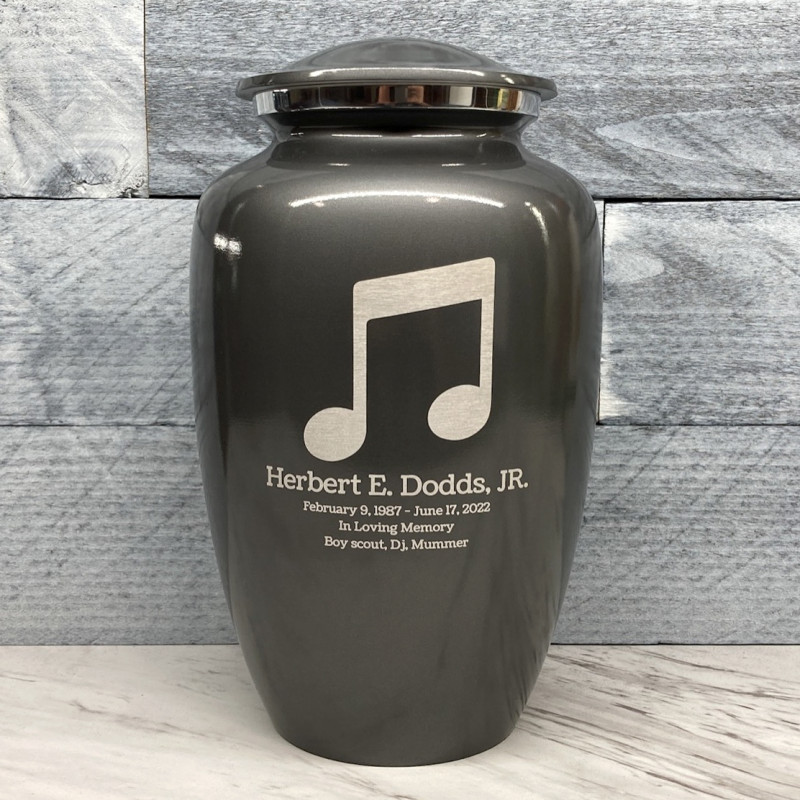 This music note themed keepsake can be purchased to accompany a larger urn or on its own.