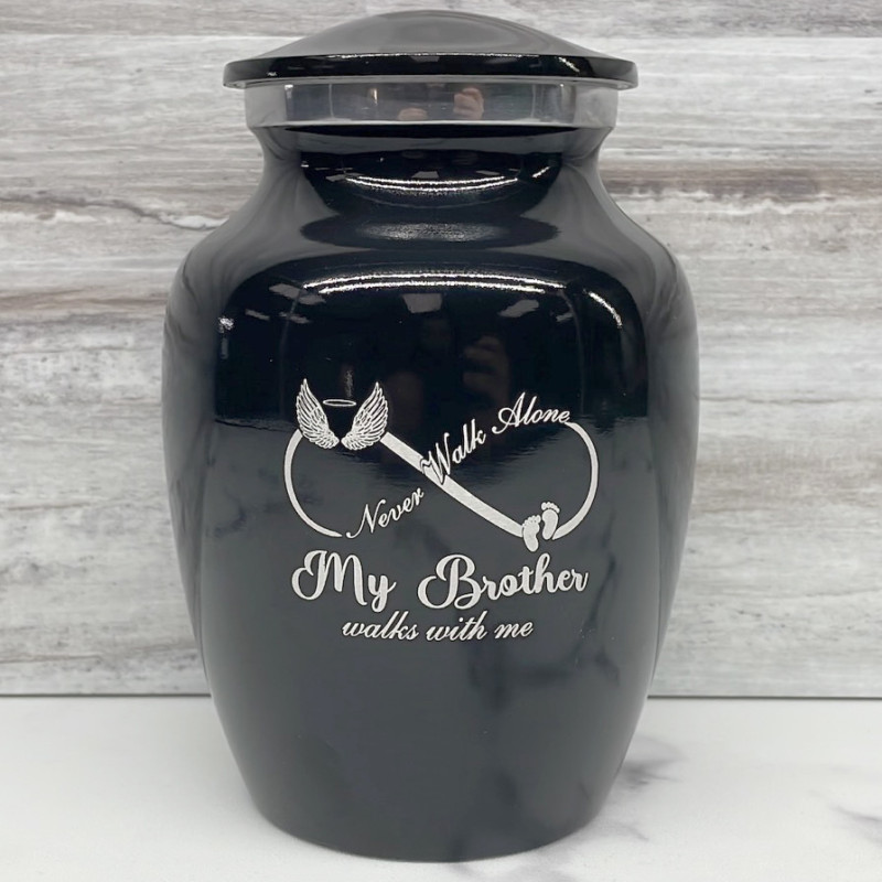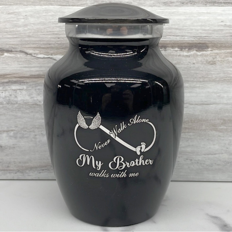 My Brother Walks With Me Sharing Urn - Midnight Blue My Brother Walks With Me Sharing Urn - Gunmetal Gray My Brother Walks With Me Sharing Urn - Purple Luster My Brother Walks With Me Sharing Urn - Shamrock Green My Brother Walks With Me Sharing Urn - Ruby RedMy Brother Walks With Me Sharing Urn - Jet Black