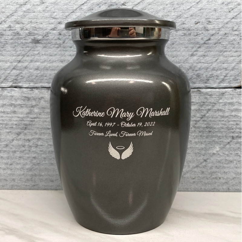 Select an engraved sharing urn to create a personal memorial that is a step larger than a keepsake urn but more petite than a full size urn. Bold, attractive colors offer sharp contrast with the engraved text and detailed artwork.