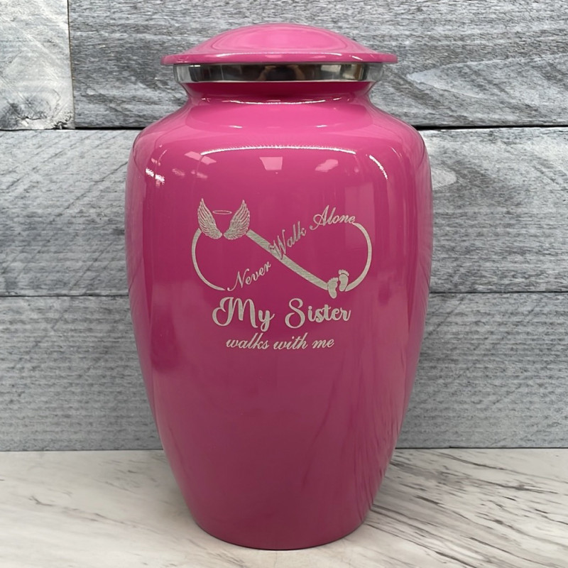My Sister Walks With Me Cremation Urn - Rose Pink