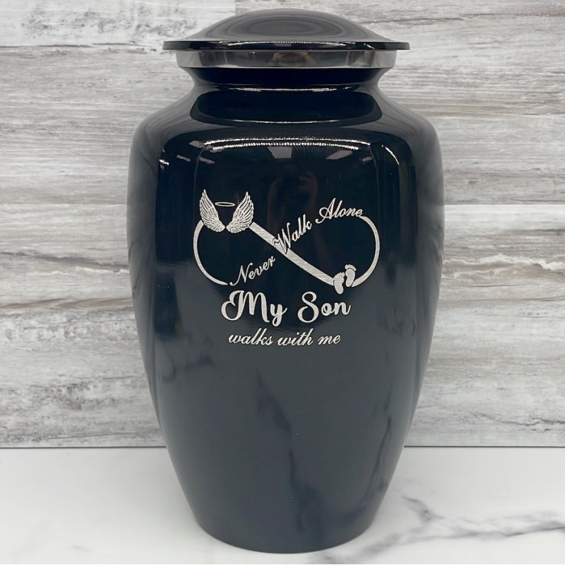 My Son Walks With Me Cremation Urn - Midnight Blue My Son Walks With Me Cremation Urn - Gunmetal Gray My Son Walks With Me Cremation Urn - Purple Luster My Son Walks With Me Cremation Urn - Shamrock Green My Son Walks With Me Cremation Urn - Ruby RedMy Son Walks With Me Cremation Urn - Jet Black