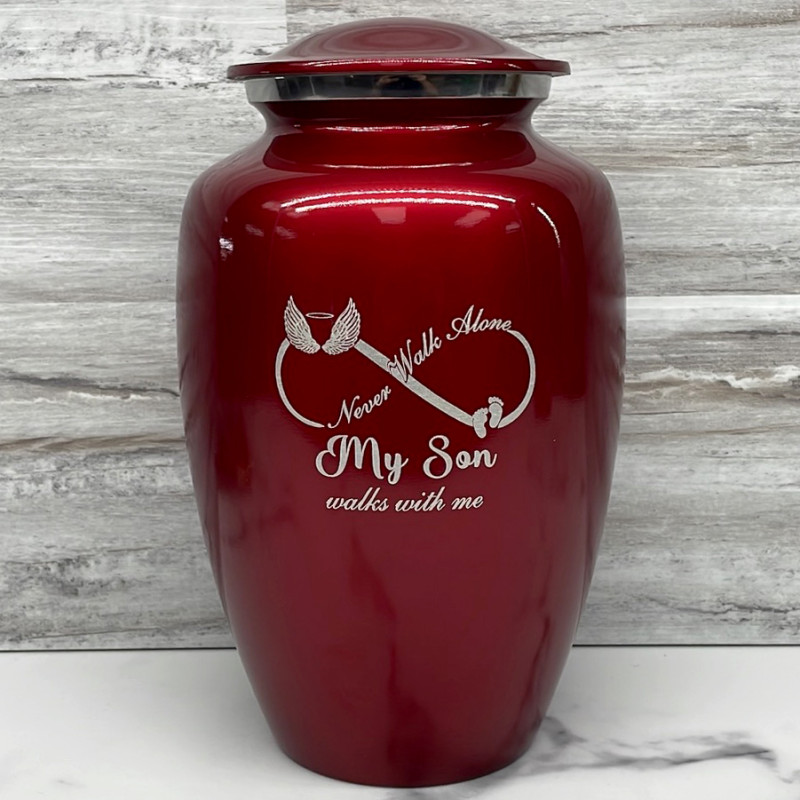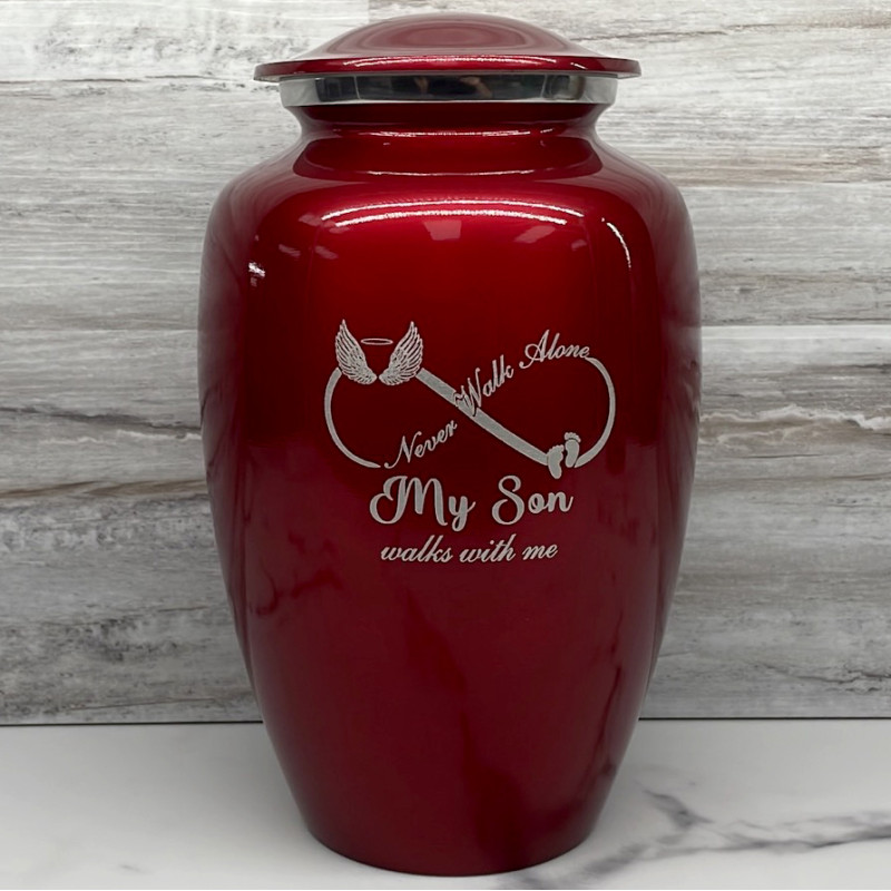 My Son Walks With Me Cremation Urn - Midnight Blue My Son Walks With Me Cremation Urn - Gunmetal Gray My Son Walks With Me Cremation Urn - Purple Luster My Son Walks With Me Cremation Urn - Shamrock GreenSizes