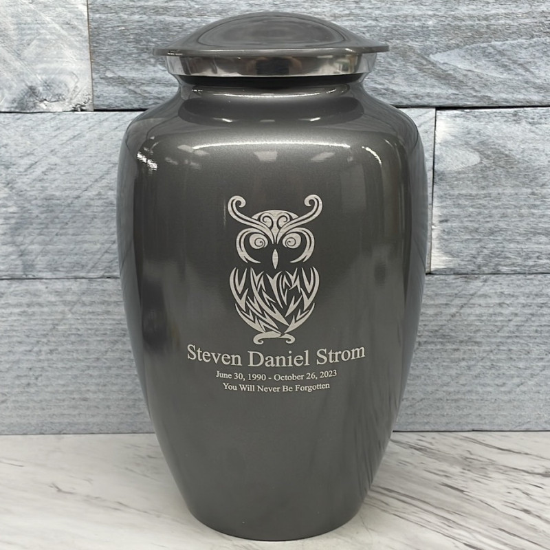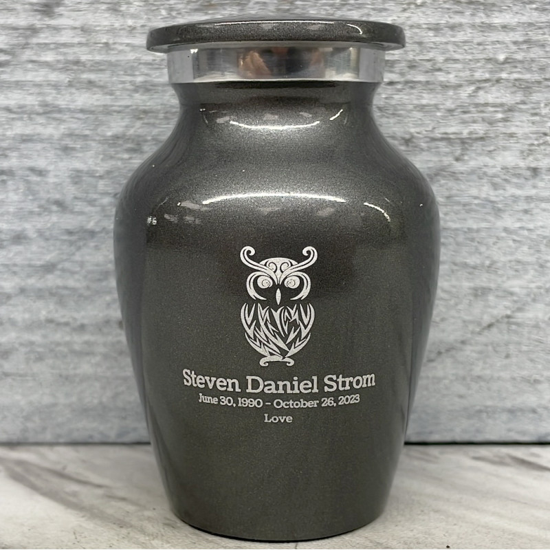 Choose the Gunmetal Owl Keepsake Cremation Urn to celebrate your loved one with a personal memorial engraved with beautiful and wise owl. Customize the urn with special engraving for each family member or close friend, creating memorials for each to hold close.