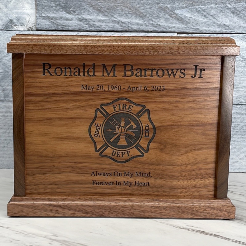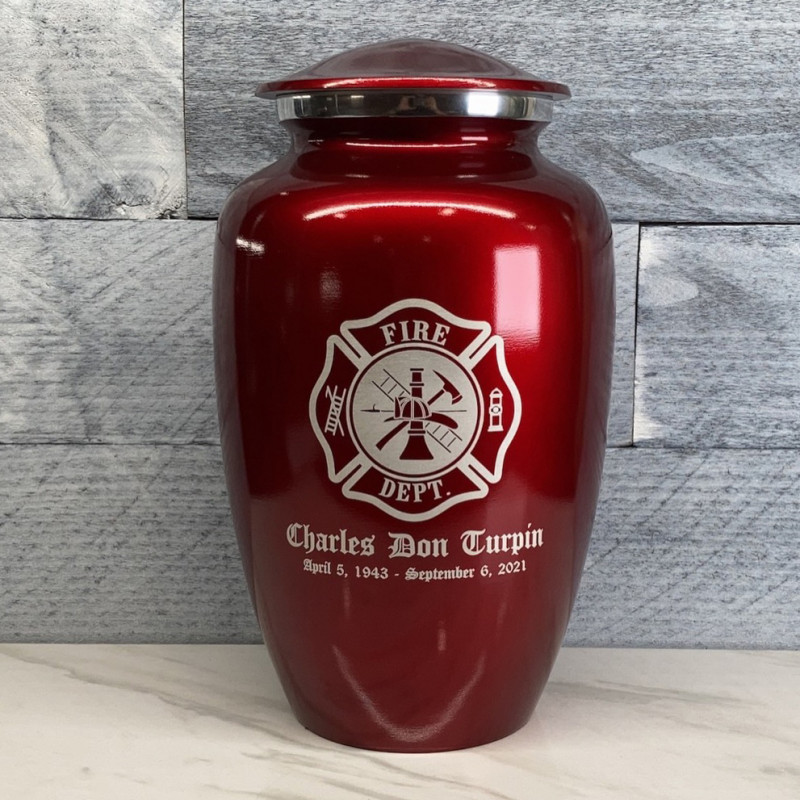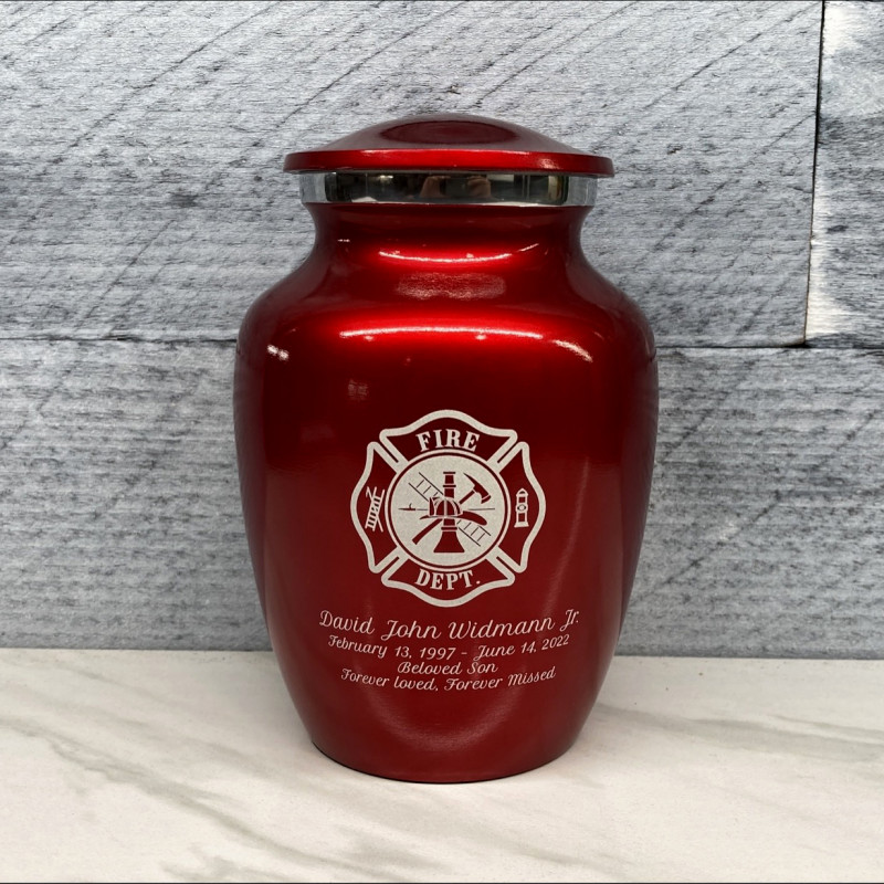Choose an engraved individual cremation urn to create a beautiful memorial that is sized to hold the entire remains of any adult. Bold, attractive colors offer sharp contrast with the engraved text and detailed artwork.