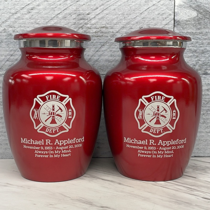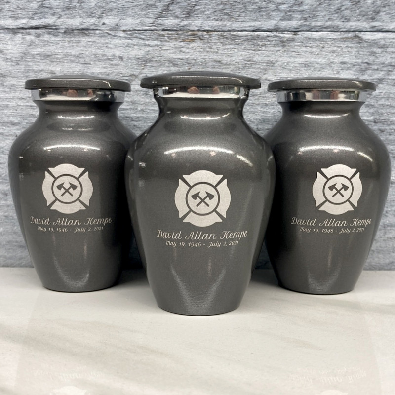 Matching keepsakes and sharing size urns are available in a variety of colors so that family members and close friends can have a personal memorial. Free engraving previews and free shipping are offered on every engraved memorial.