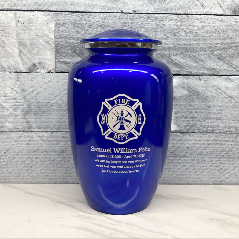 Patriotic Firefighter Cremation Urn - Midnight Blue