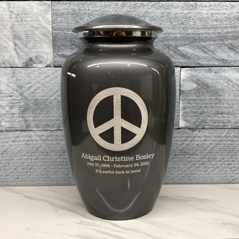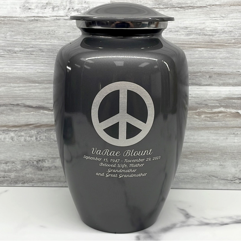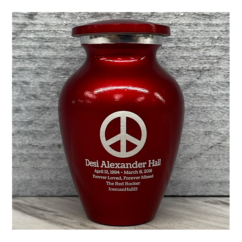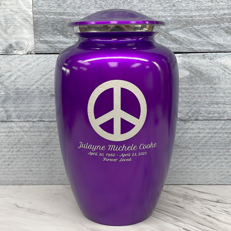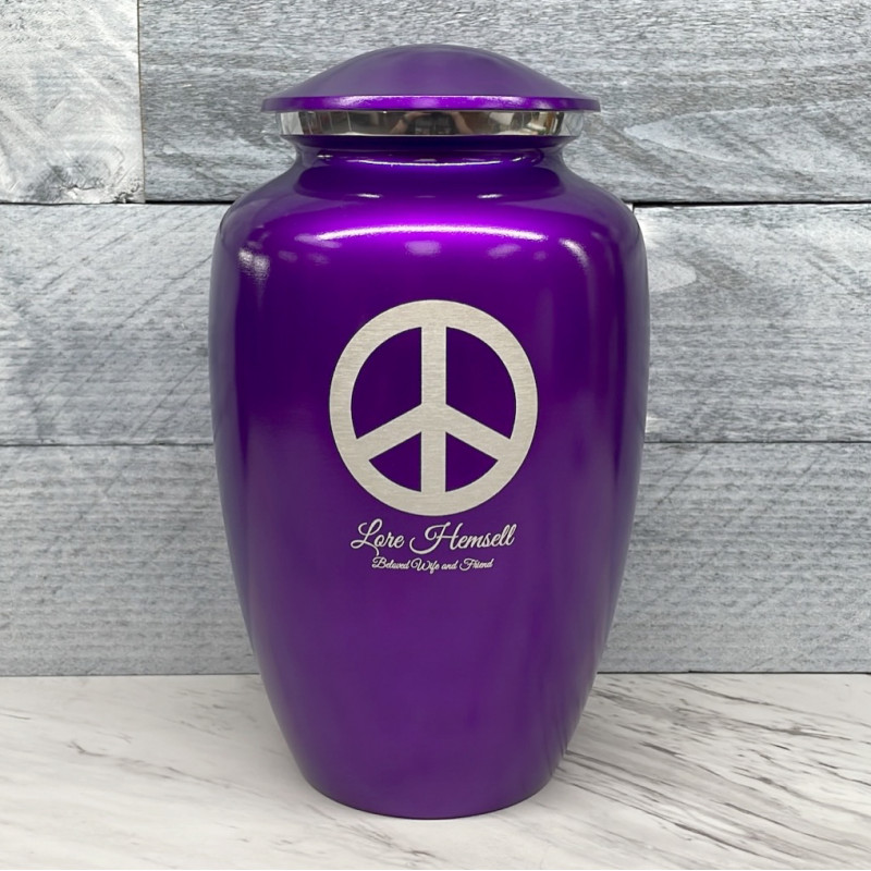 Choose an engraved individual cremation urn to create a beautiful memorial that is sized to hold the entire remains of any adult. Bold, attractive colors offer sharp contrast with the engraved text and detailed artwork.