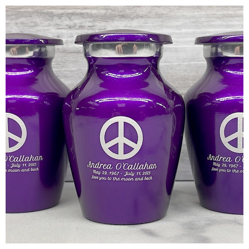 Matching keepsakes and sharing size urns are available in a variety of colors so that family members and close friends can have a personal memorial. Free engraving previews and free shipping are offered on every engraved memorial.