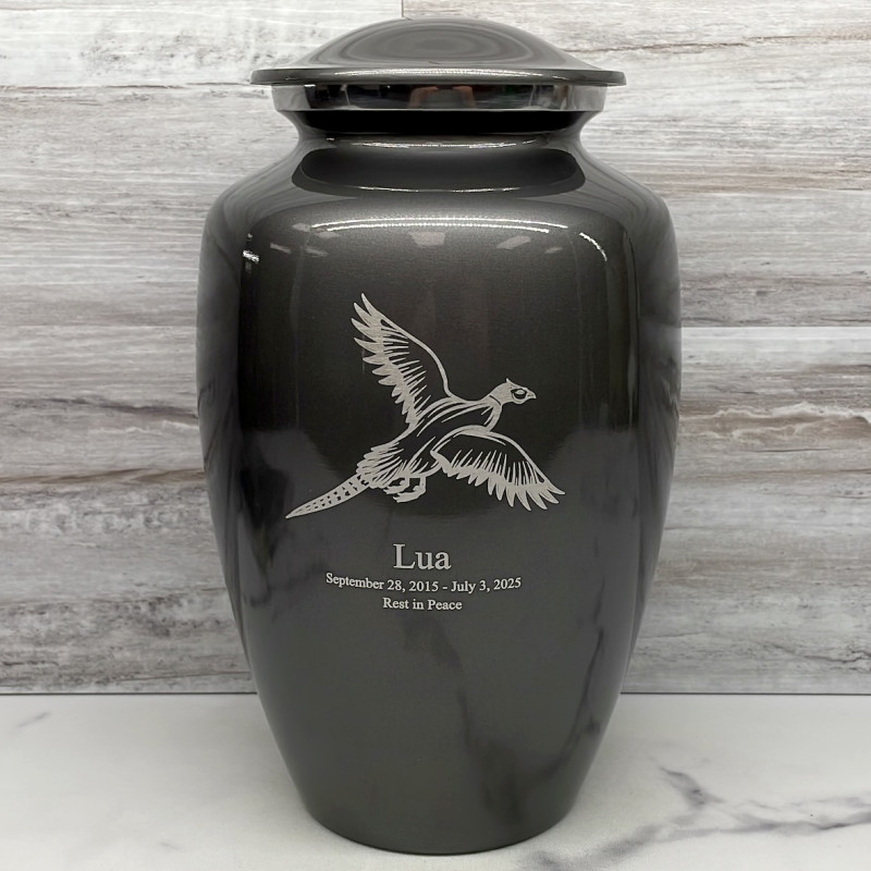 Choose an engraved individual cremation urn to create a beautiful memorial that is sized to hold the entire remains of any adult. Bold, attractive colors offer sharp contrast with the engraved text and detailed artwork.