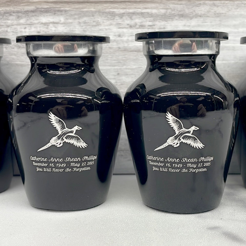 Pheasant Keepsake Urn - Midnight Blue Pheasant Keepsake Urn - Gunmetal Gray Pheasant Keepsake Urn - Purple Luster Pheasant Keepsake Urn - Shamrock Green Pheasant Keepsake Urn - Ruby RedSizes