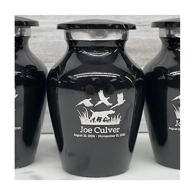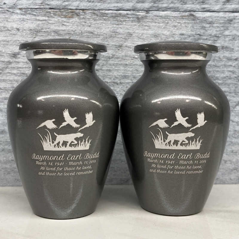 Sharing urns are an option for anyone who is sharing remains amongst family or close friends. They can be used in place of a keepsake urn for a portion of the ashes. Larger than the standard keepsake size, they are able to hold much more ashes and allow for the engraving to be twice the size.