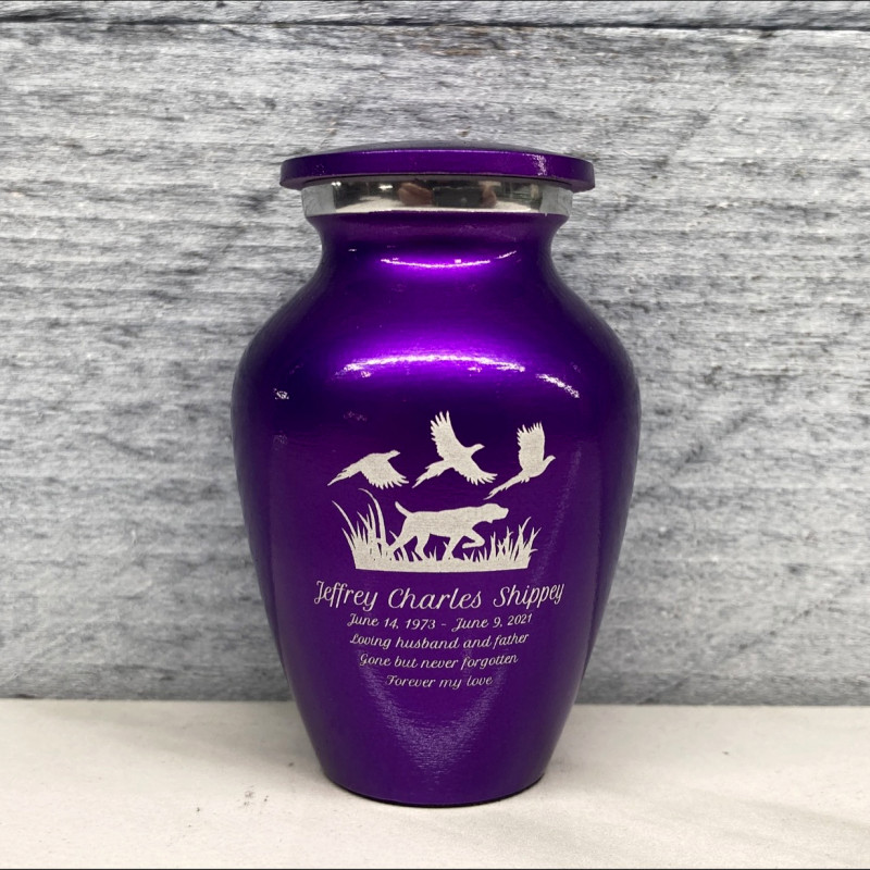 Select an engraved sharing urn to create a personal memorial that is a step larger than a keepsake urn but more petite than a full size urn. Bold, attractive colors offer sharp contrast with the engraved text and detailed artwork.