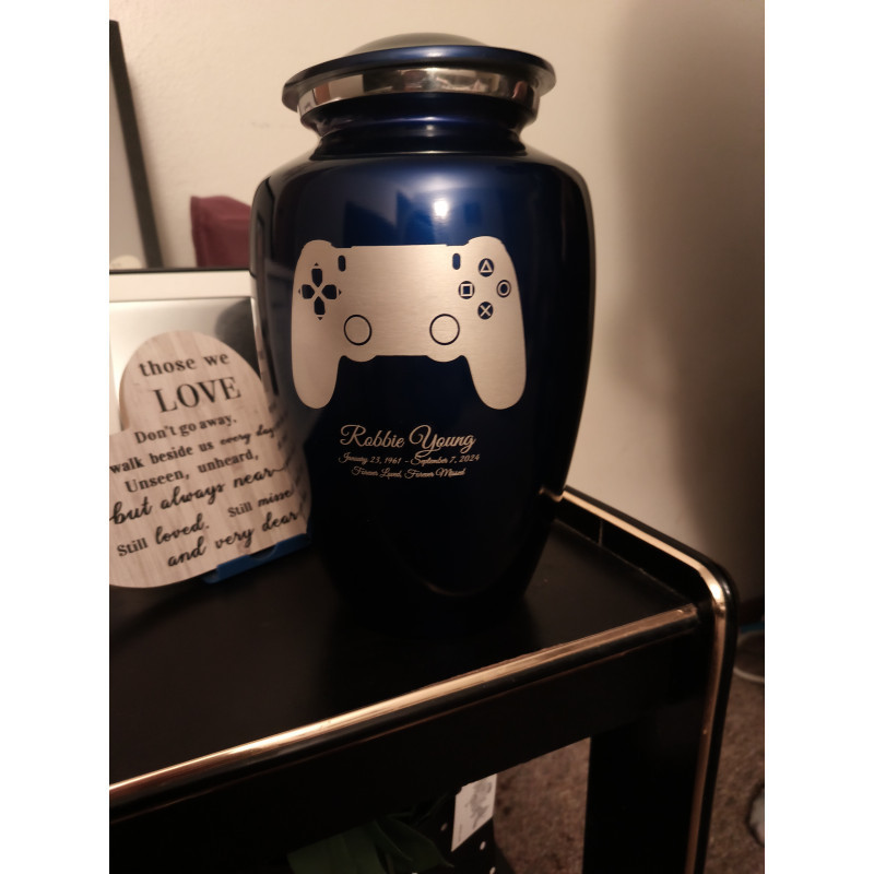 It was our honor to create this gaming urn for your husband. Thank you for sharing your feedback and wonderful picture.