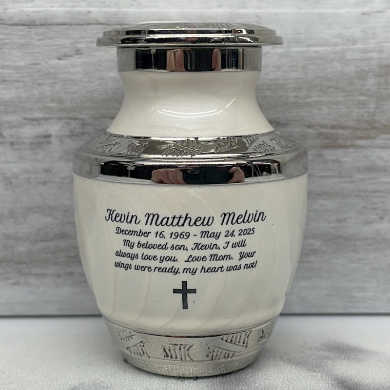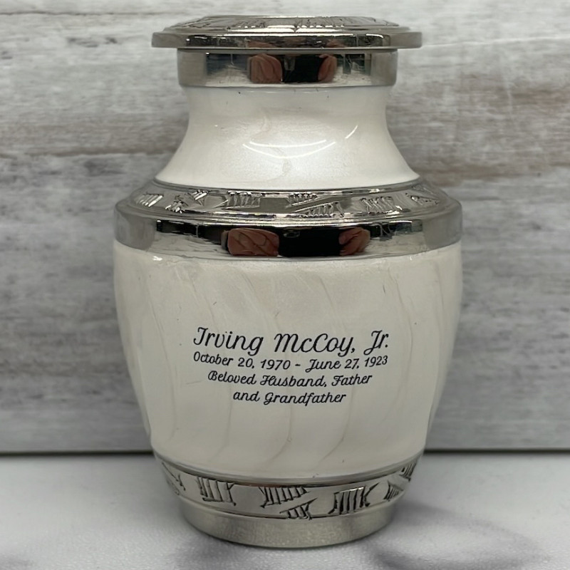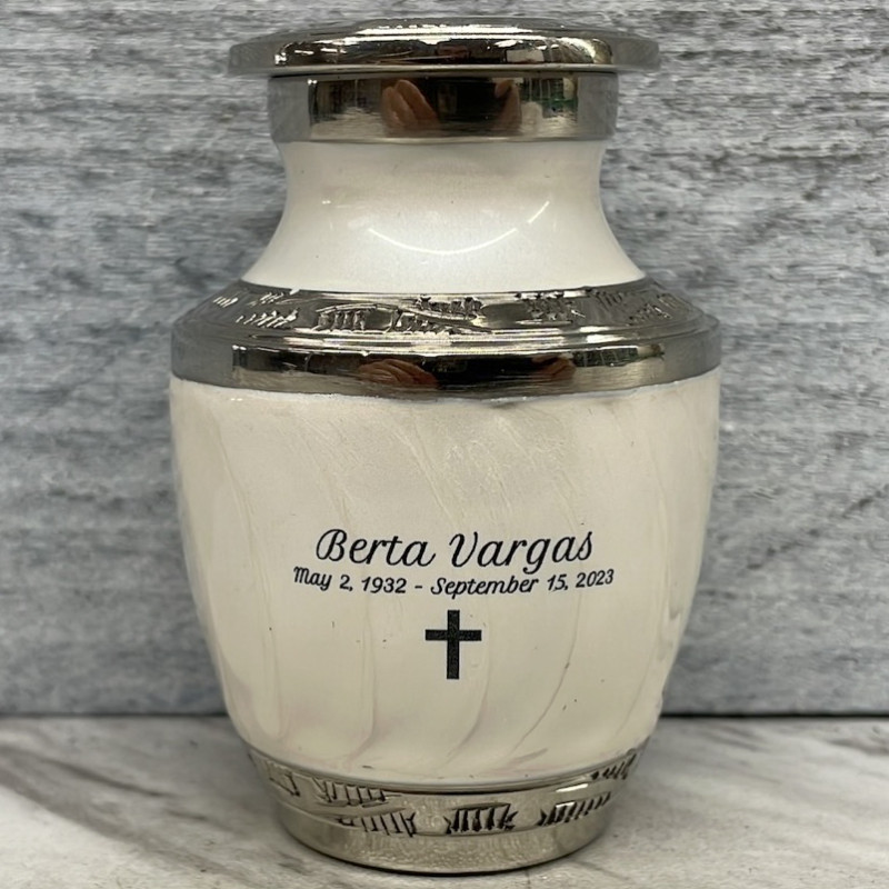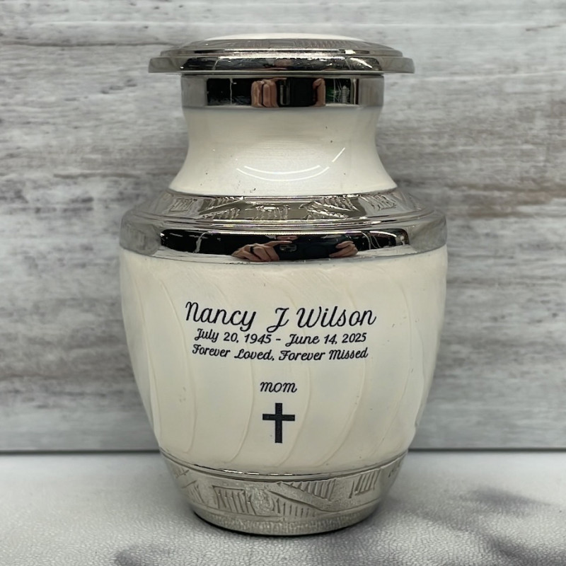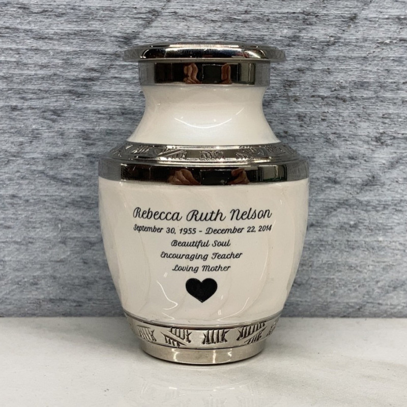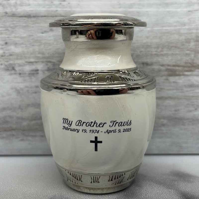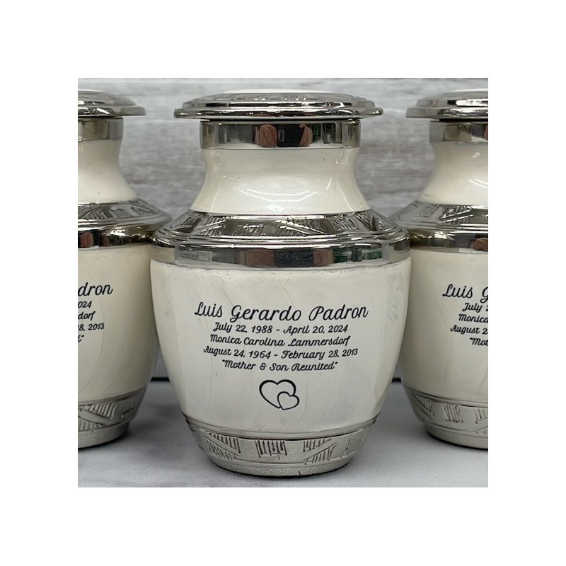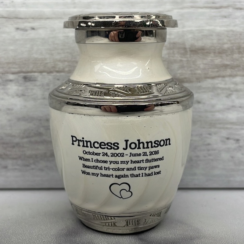 These are beautiful little urns. I lost two of my brothers within a brief period of time last year and found this wonderful store and lovely urns. These are the two I choose and my mom loved the white one so much we ordered from them again. Thank you for these beautiful urns.