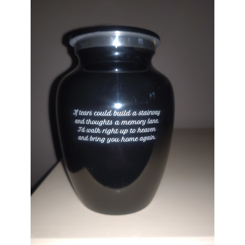 This is a beautiful memorial, arrived very quickly and the personalization was professionally completed just as i hoped. My sister was a professional musician, playing the piano most of her life. The piano was a perfect tribute to her. Thank you for a wonderful cremation urn that is perfect for honoring the untimely passing of my sister.