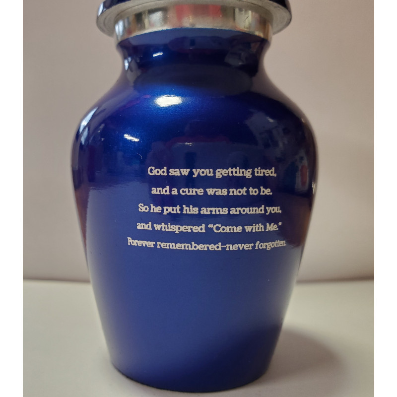I bought this Goodbyes Are Not Forever Urn in blue for my grandma, and it's a nice touch for her memorial service. Customer service was helpful with questions