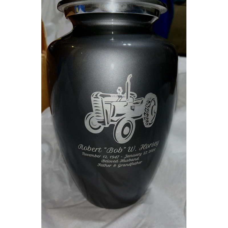 I searched for a few weeks to find the perfect urn for my grandfather to gift to my grandma. Not only did I appreciate the price of this urn, but I was pleasantly surprised with the FAST turn around! I ordered it on a Wednesday, got an email not even 20 min after ordering saying it was being shipped, & it arrived on that Saturday! This urn is beautiful & it is perfect for my grandfather who ran a successful dairy farm & LOVED his tractors! Thank you so much!