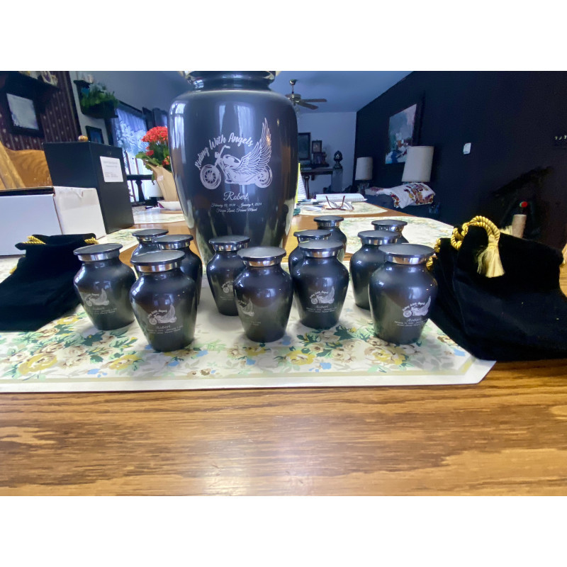 My family and I were very happy with the urns.The color was almost the same color as my dad’s motorcycle he had.We had ordered them and were mailed out the next day,super fast service. Communication was very good Nat was very helpful with the mailing process.The urns were great quality and good color we all loved them and my dad would’ve also.Thank you so much.