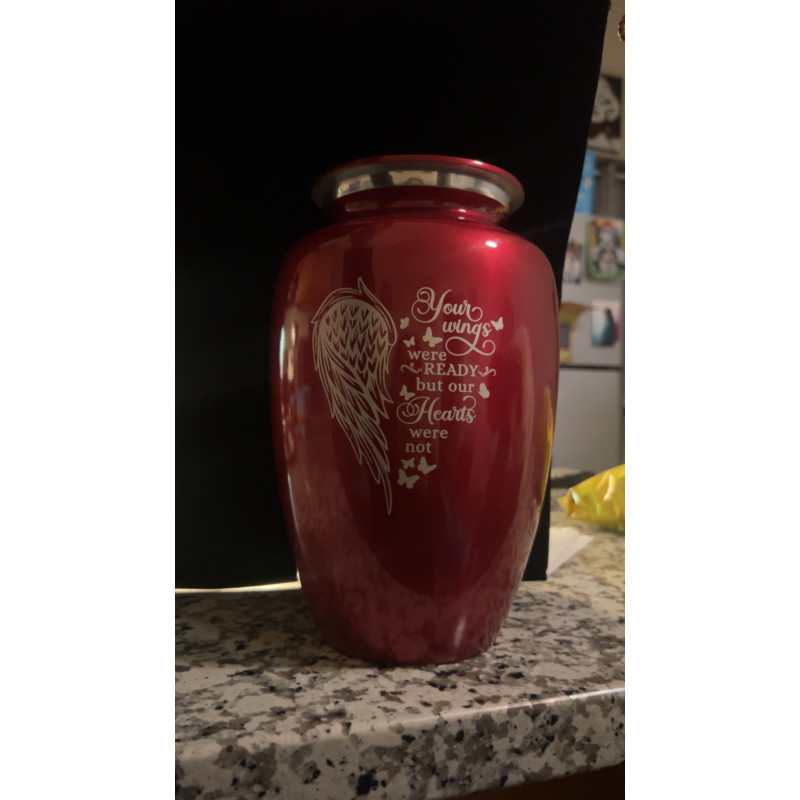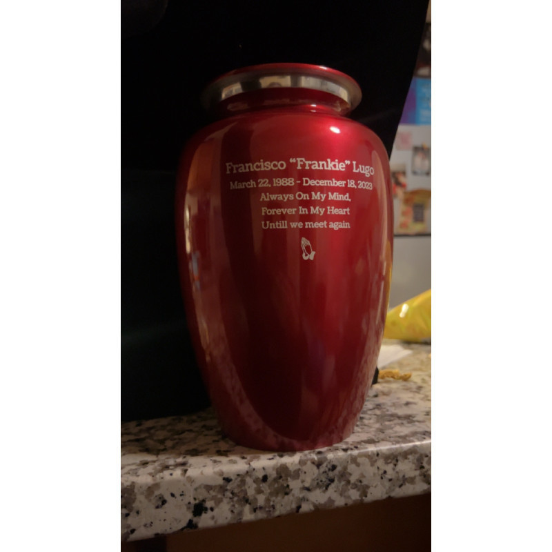 I received this gorgeous sharing urn in just a couple of days after the order. I appreciate the heft and feel of the urn, and the design and personalization make it a perfect container for ashes. Thank you to Emilio C. for preparing this memorial urn for my mom.