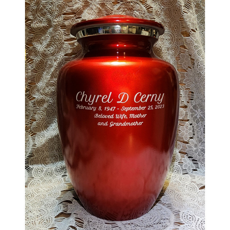 The engraving was beautifully applied. The urn was packaged well and arrived in perfect condition, in a timely manner. I was immediately contacted to verify the spelling and dates to ensure it would be created and shipped on time. We know we made the right choice for my mom.