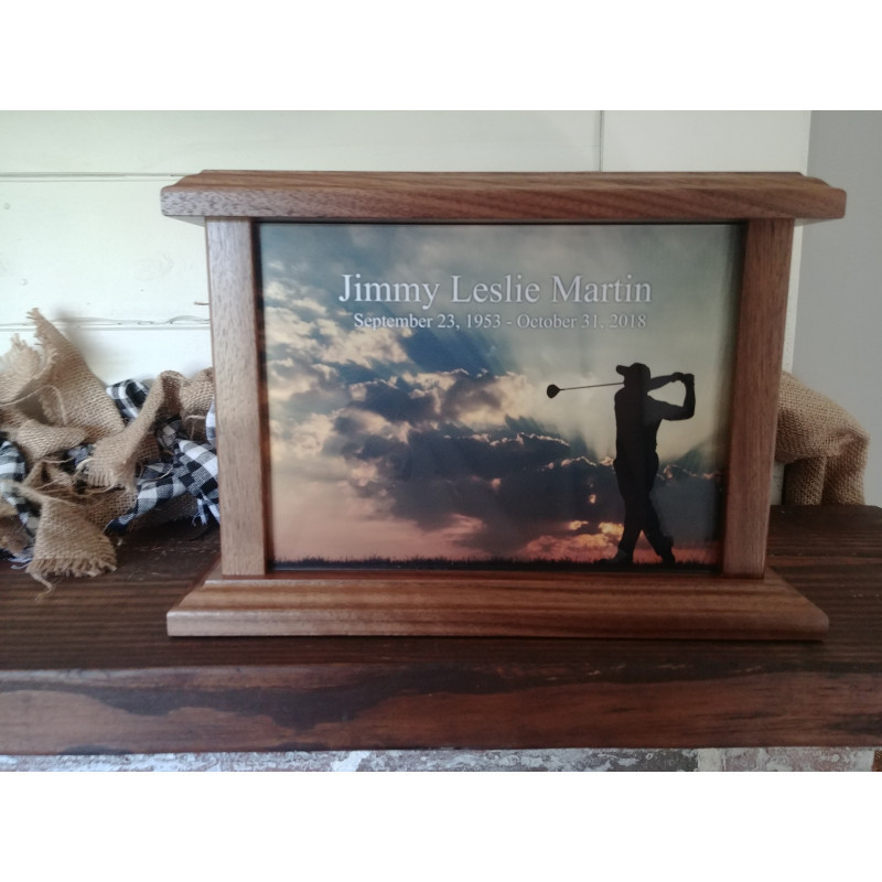 I love this urn, it was perfect and looks even better in person. I looked for awhile trying to find an urn that was golfer themed for my dad and I am glad I found this one because its so beautiful. Very happy with it. Thank you Green Meadow Memorials. Finally, no more plain white cardboard box.