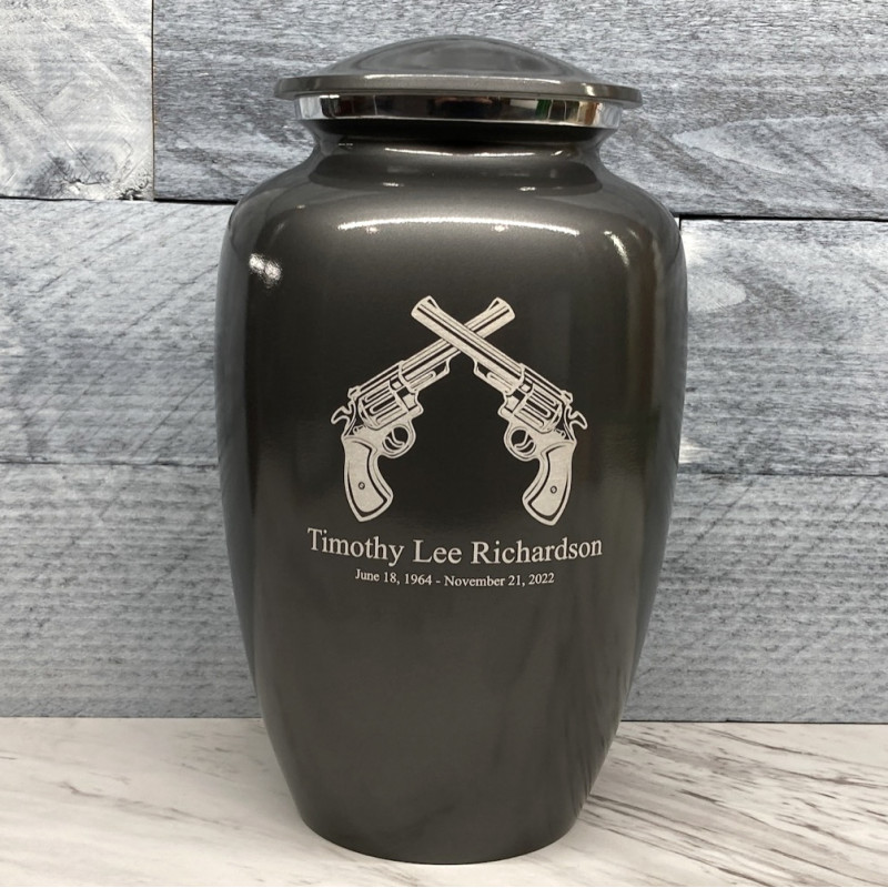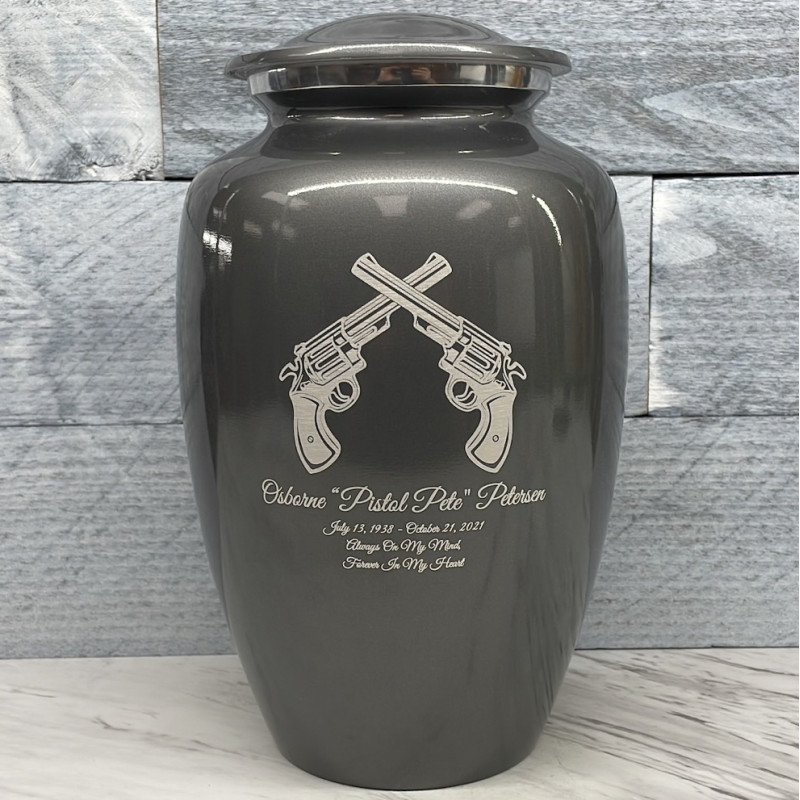 Revolver Pistol Cremation Urn - Gunmetal Gray