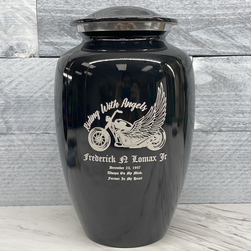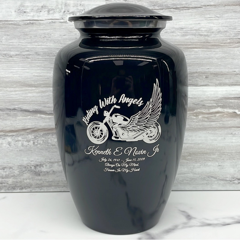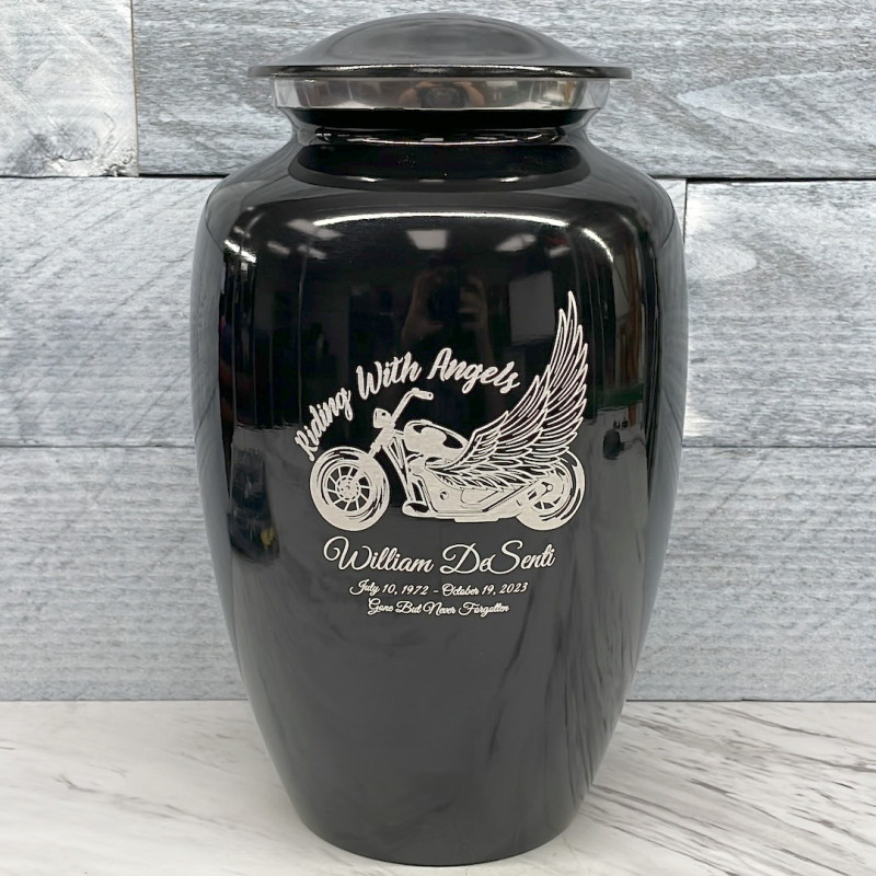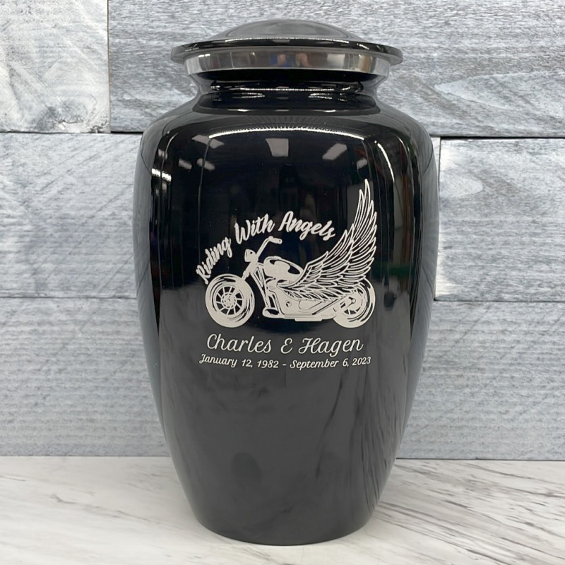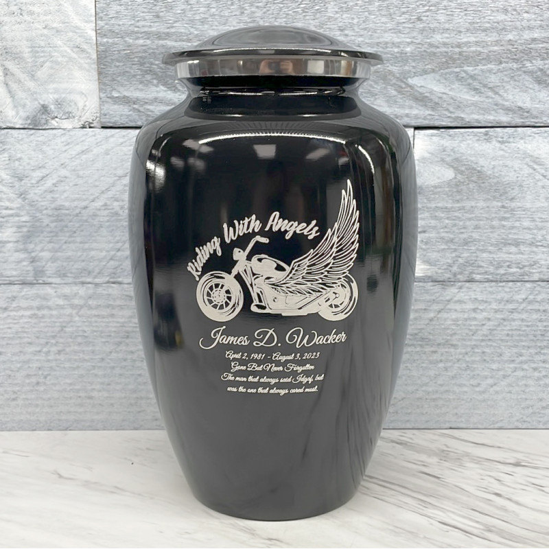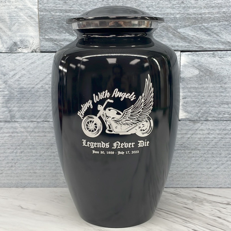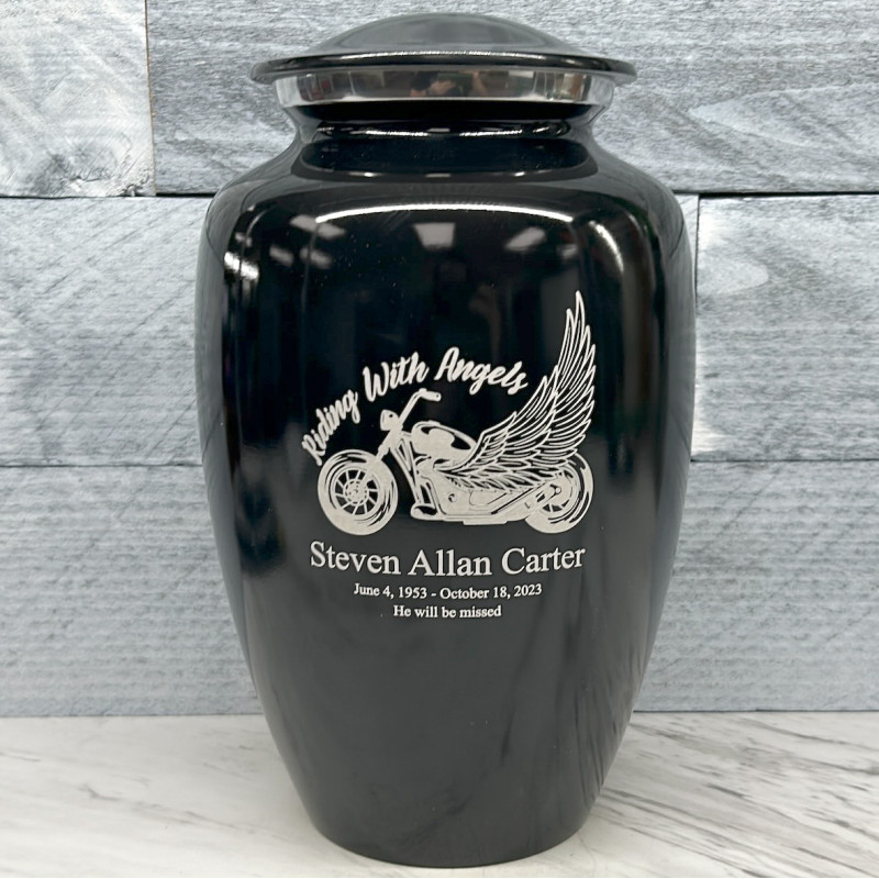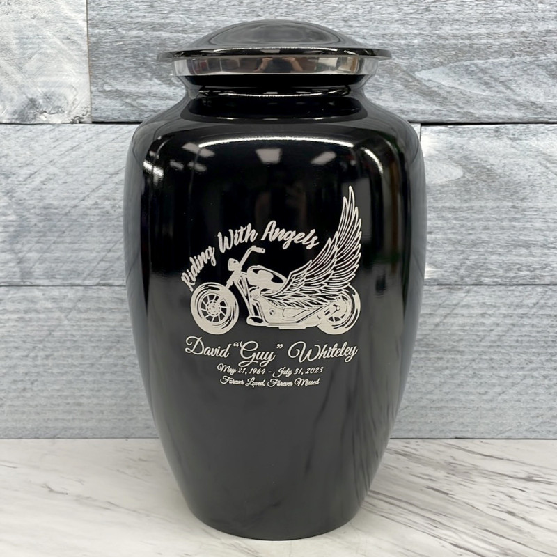 Riding with Angels Motorcycle Cremation Urn - Midnight Blue Riding with Angels Motorcycle Cremation Urn - Gunmetal Gray Riding with Angels Motorcycle Cremation Urn - Purple Luster Riding with Angels Motorcycle Cremation Urn - Shamrock Green Riding with Angels Motorcycle Cremation Urn - Ruby RedSizes