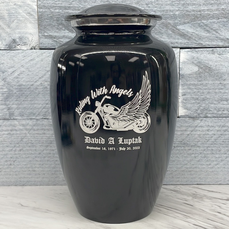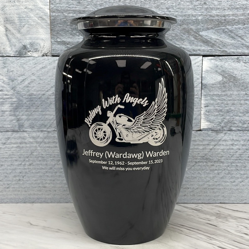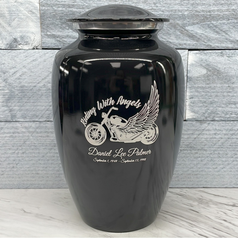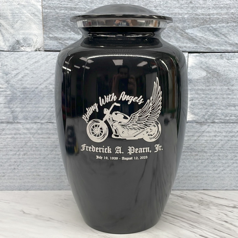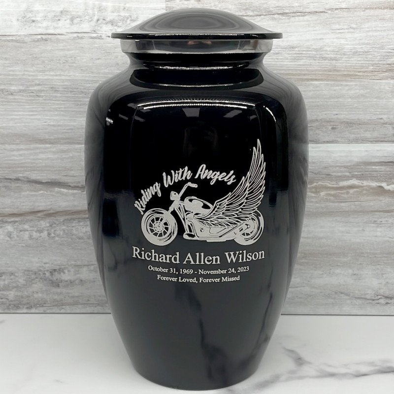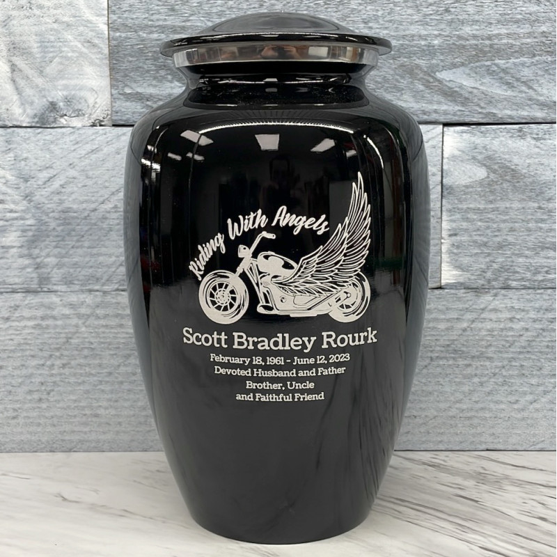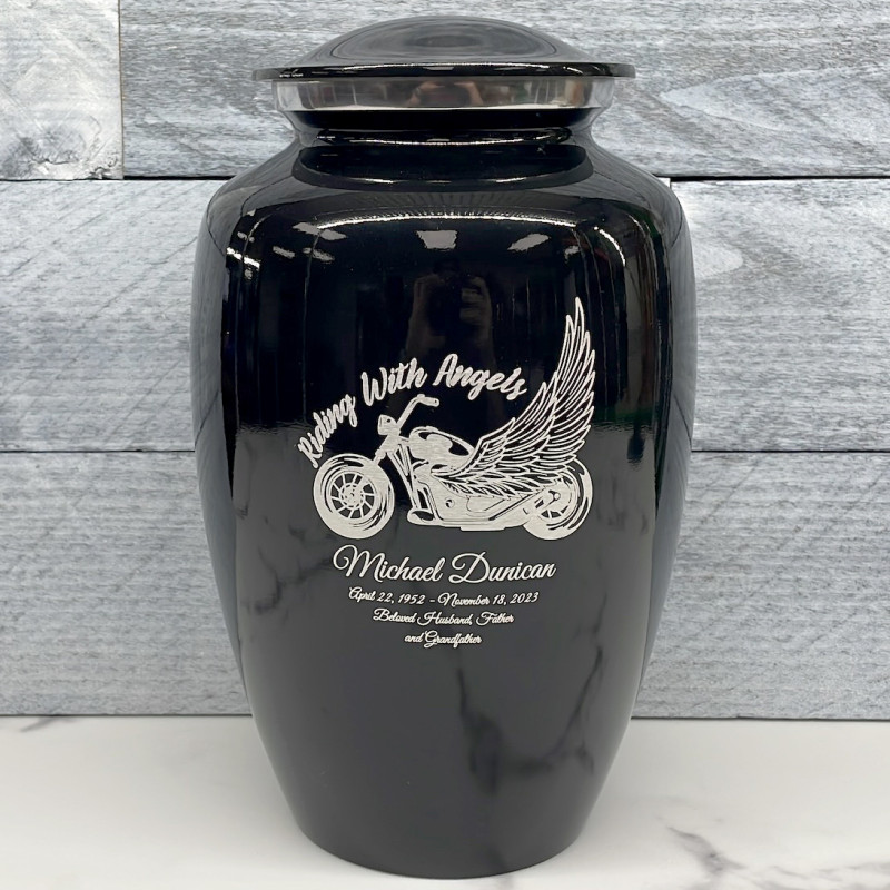 Riding with Angels Motorcycle Cremation Urn - Midnight Blue Riding with Angels Motorcycle Cremation Urn - Gunmetal Gray Riding with Angels Motorcycle Cremation Urn - Purple Luster Riding with Angels Motorcycle Cremation Urn - Shamrock Green Riding with Angels Motorcycle Cremation Urn - Ruby RedSizes