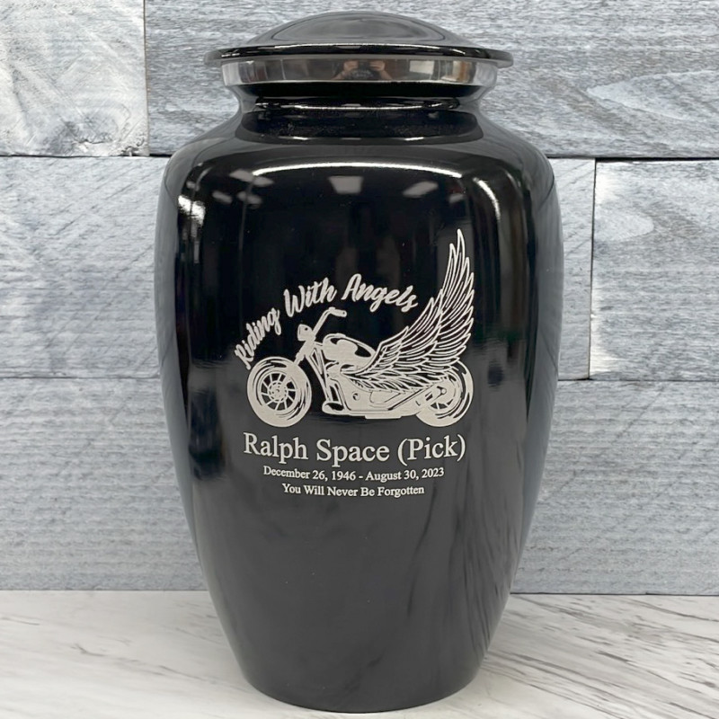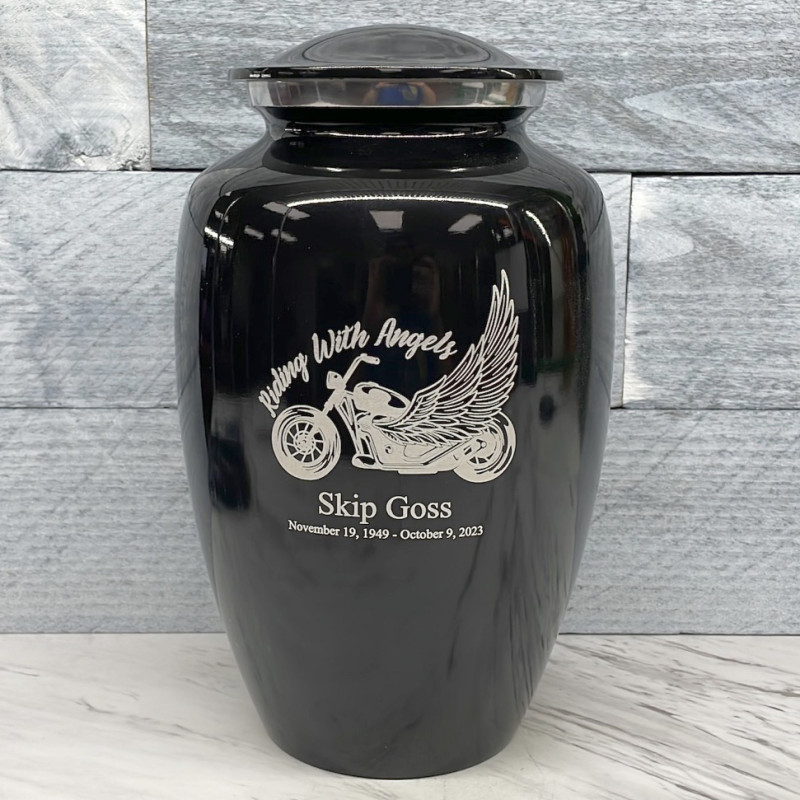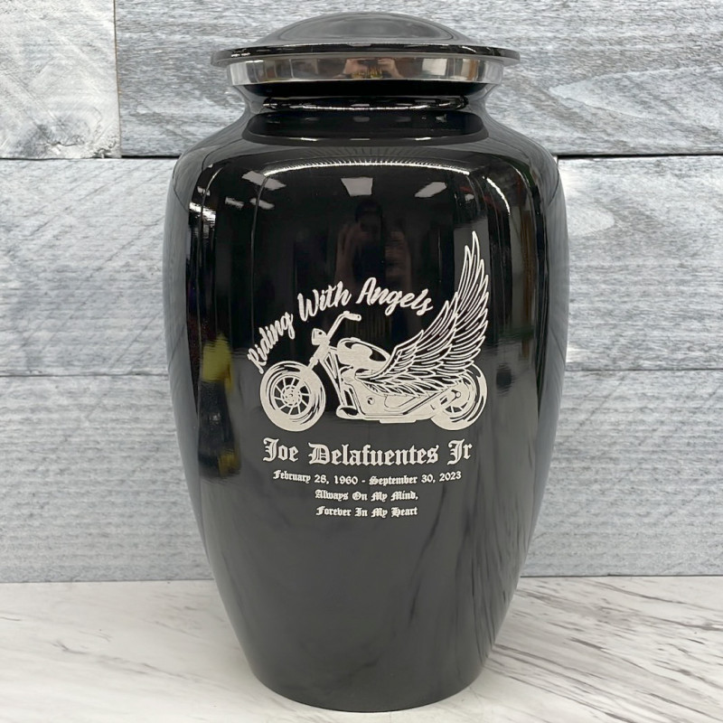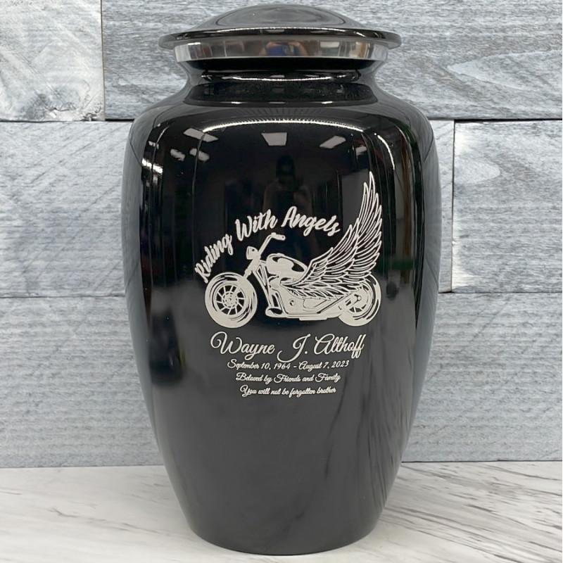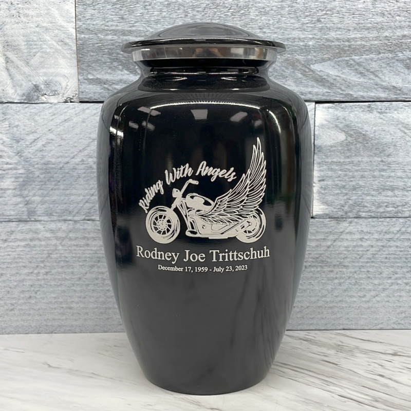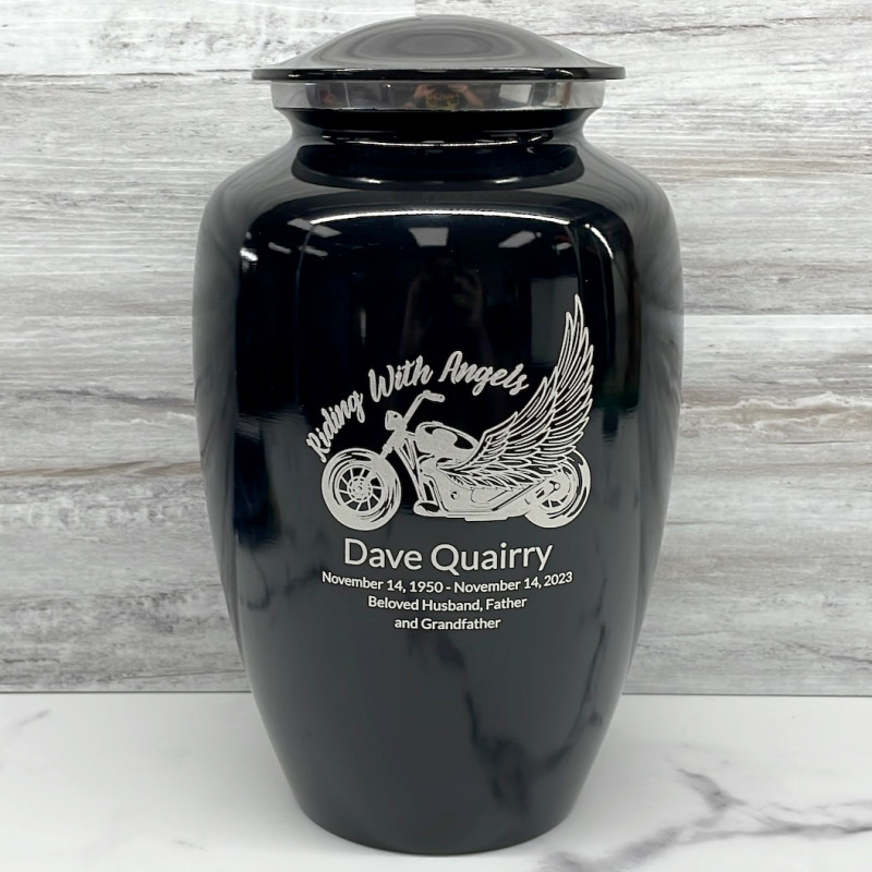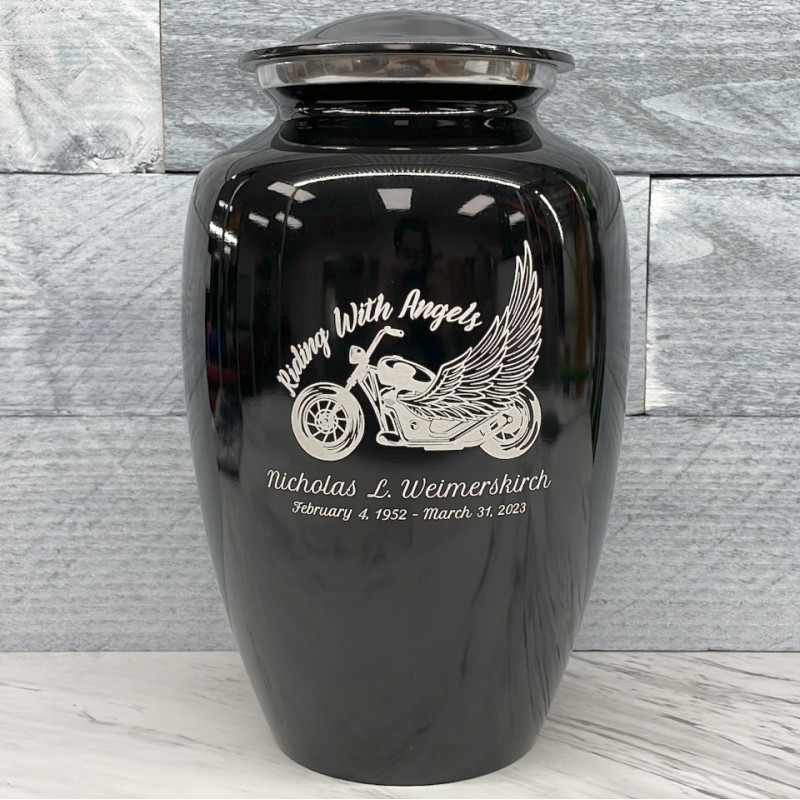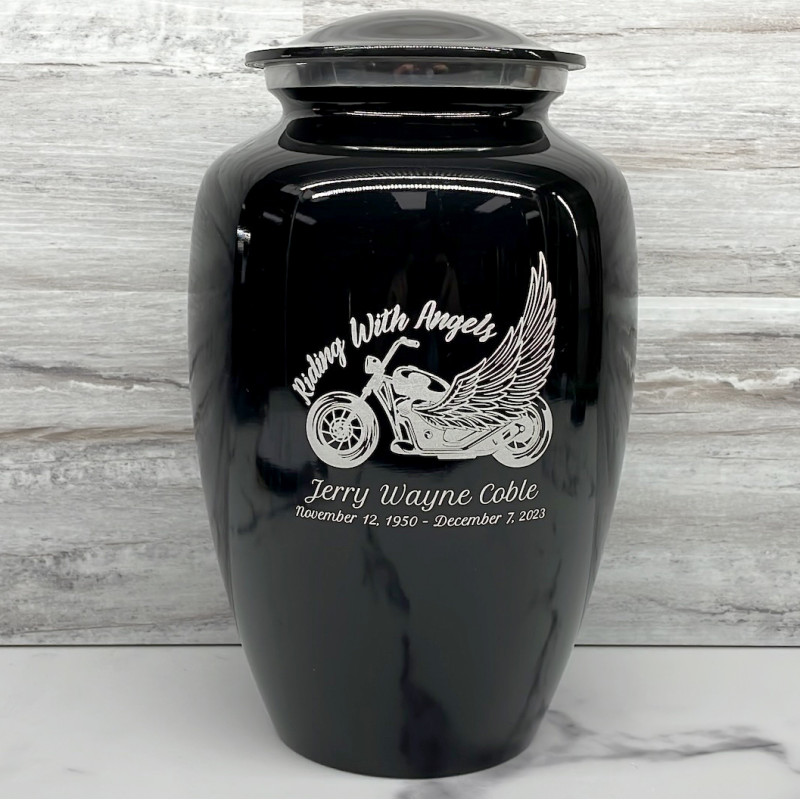 Riding with Angels Motorcycle Cremation Urn - Midnight Blue Riding with Angels Motorcycle Cremation Urn - Gunmetal Gray Riding with Angels Motorcycle Cremation Urn - Purple Luster Riding with Angels Motorcycle Cremation Urn - Shamrock Green Riding with Angels Motorcycle Cremation Urn - Ruby RedSizes