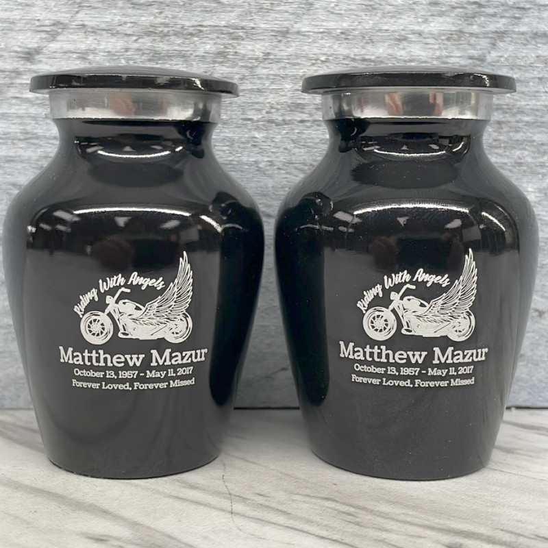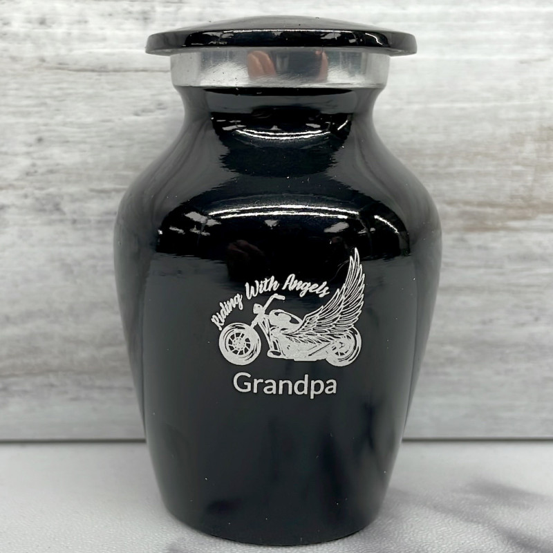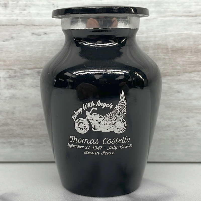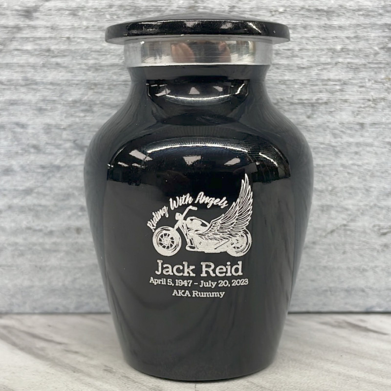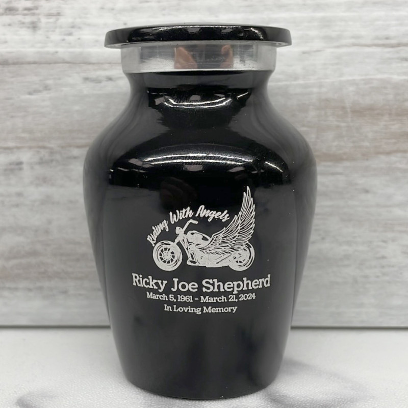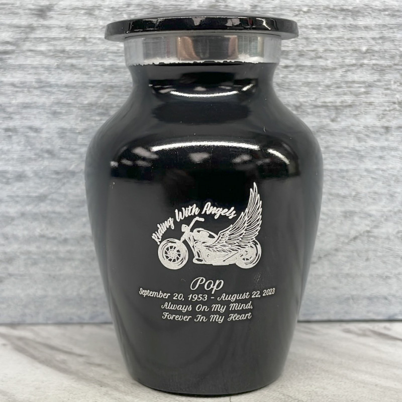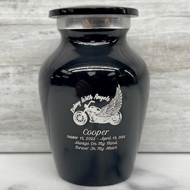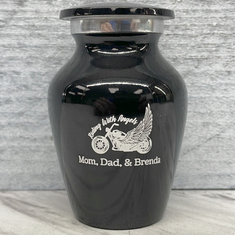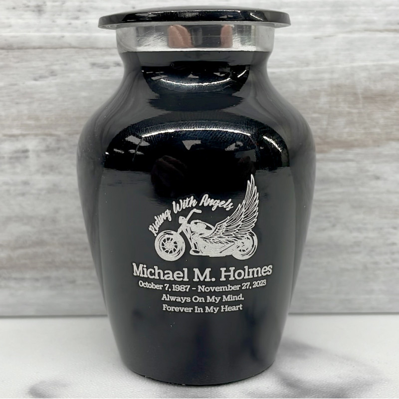 Riding with Angels Keepsake Urn - Midnight Blue Riding with Angels Keepsake Urn - Gunmetal Gray Riding with Angels Keepsake Urn - Purple Luster Riding with Angels Keepsake Urn - Shamrock Green Riding with Angels Keepsake Urn - Ruby RedSizes