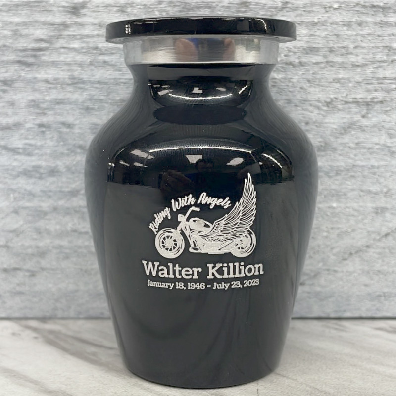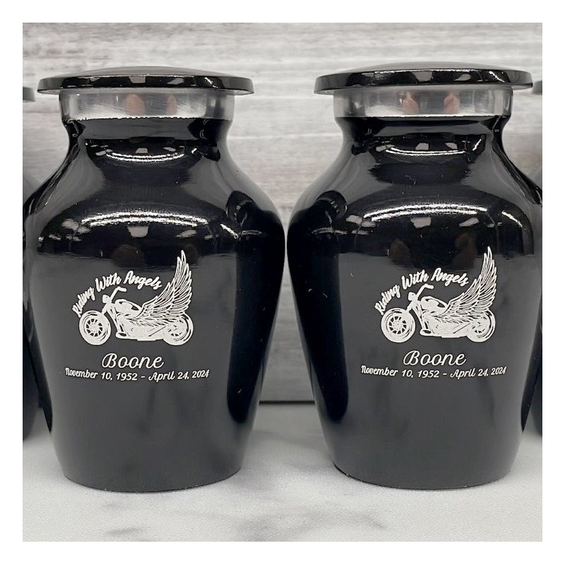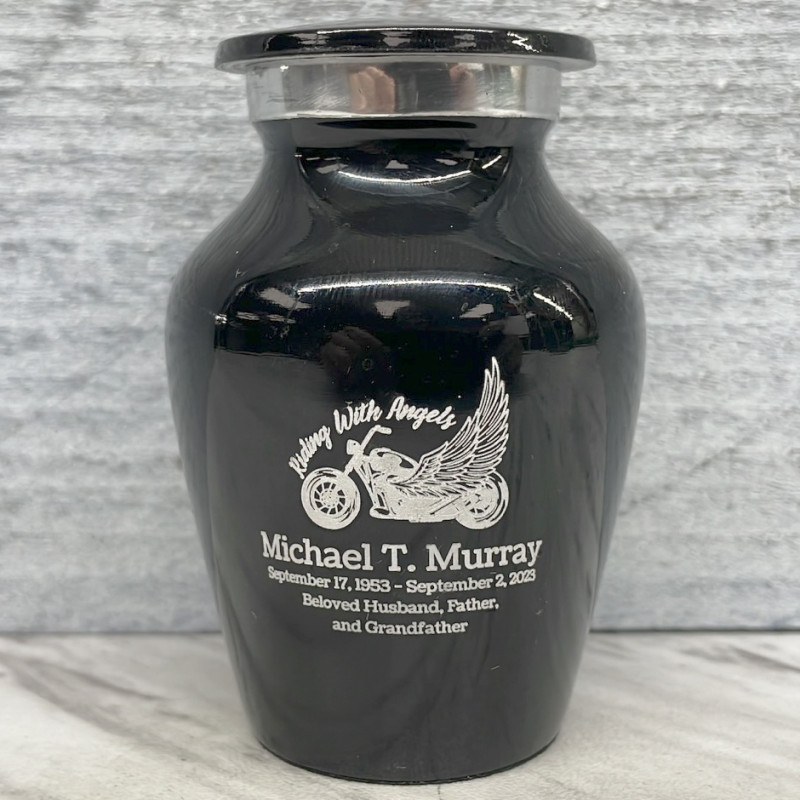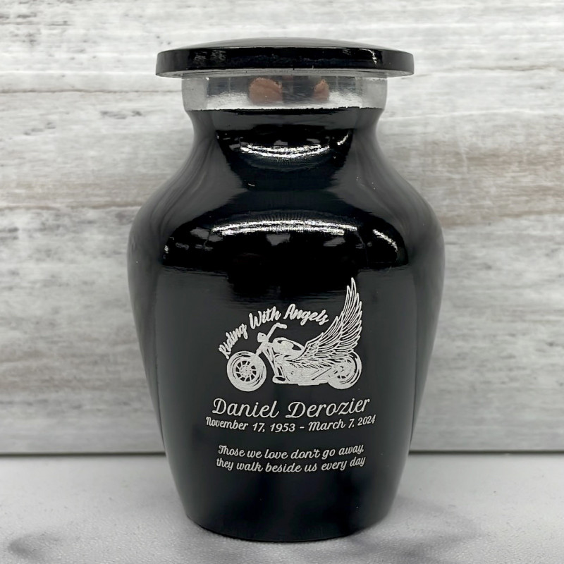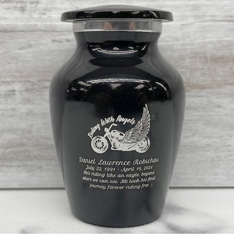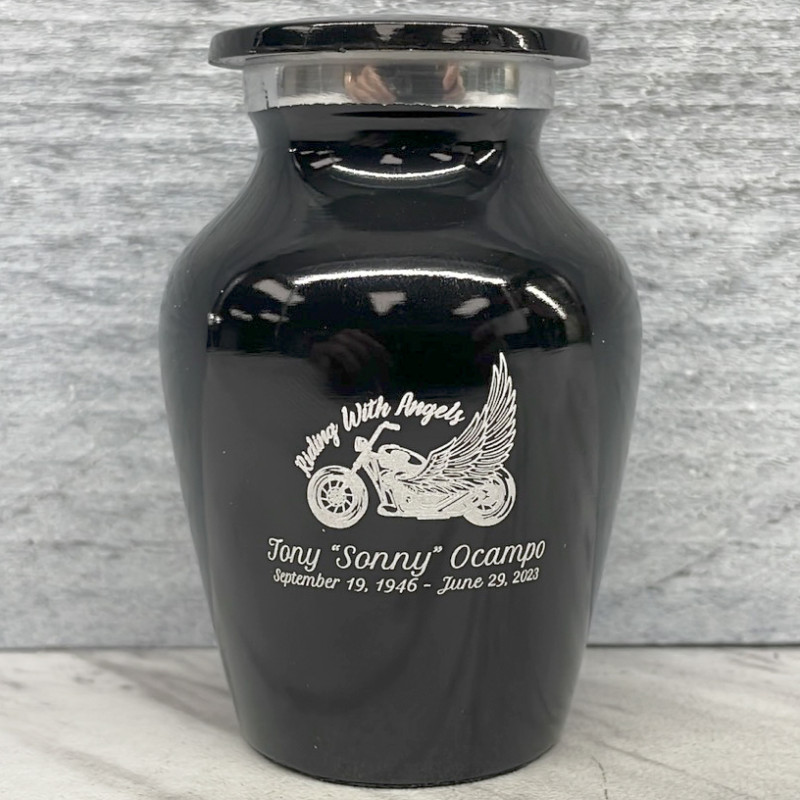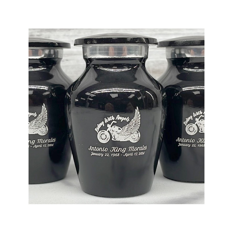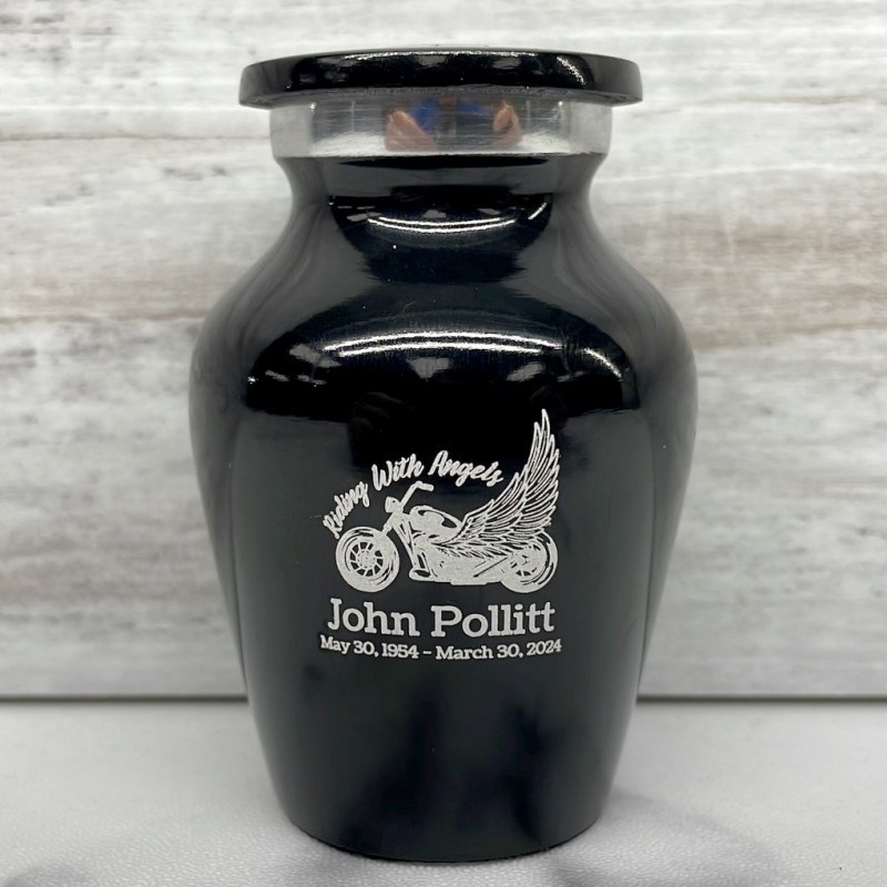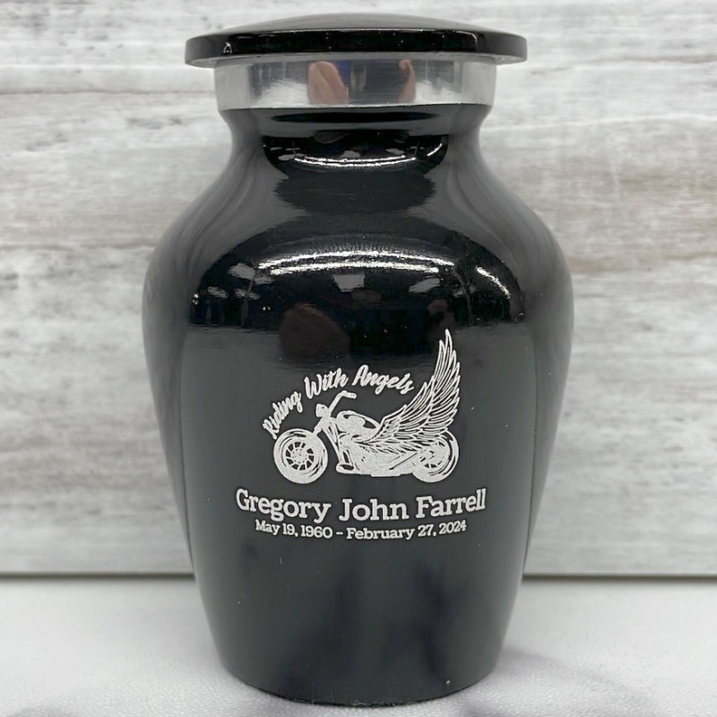 Riding with Angels Keepsake Urn - Midnight Blue Riding with Angels Keepsake Urn - Gunmetal Gray Riding with Angels Keepsake Urn - Purple Luster Riding with Angels Keepsake Urn - Shamrock Green Riding with Angels Keepsake Urn - Ruby RedSizes