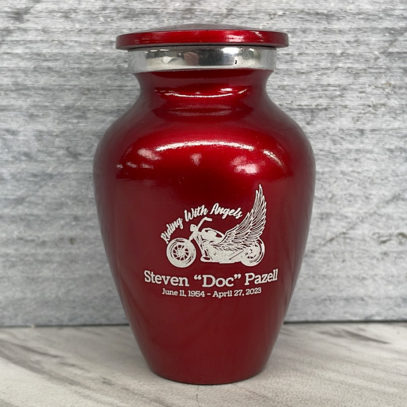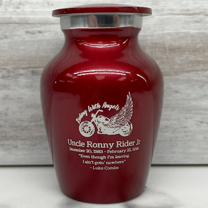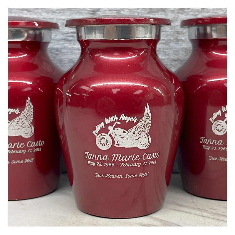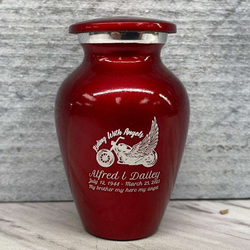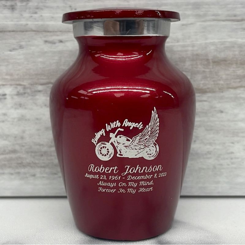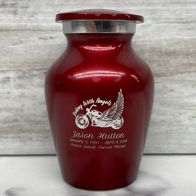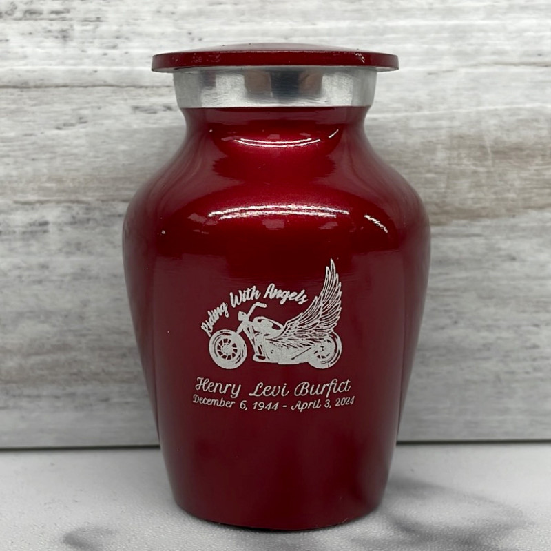Riding with Angels Keepsake Urn - Midnight Blue Riding with Angels Keepsake Urn - Gunmetal Gray Riding with Angels Keepsake Urn - Purple Luster Riding with Angels Keepsake Urn - Shamrock GreenSizes