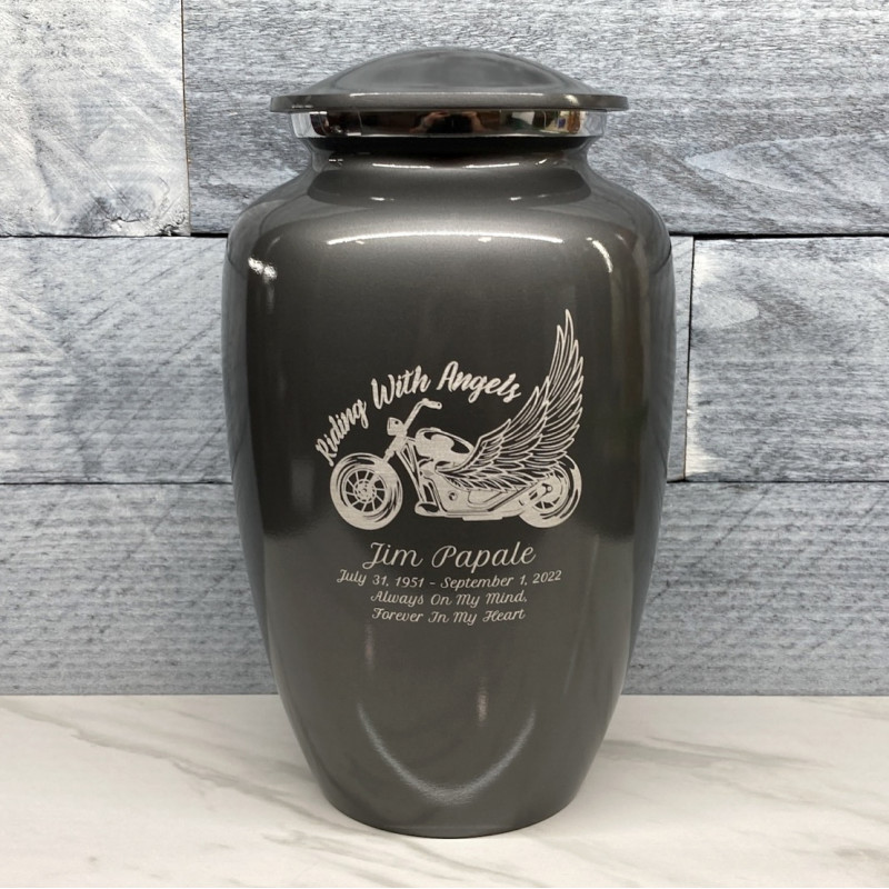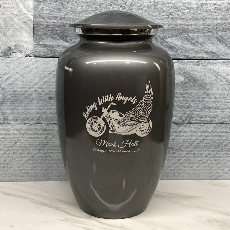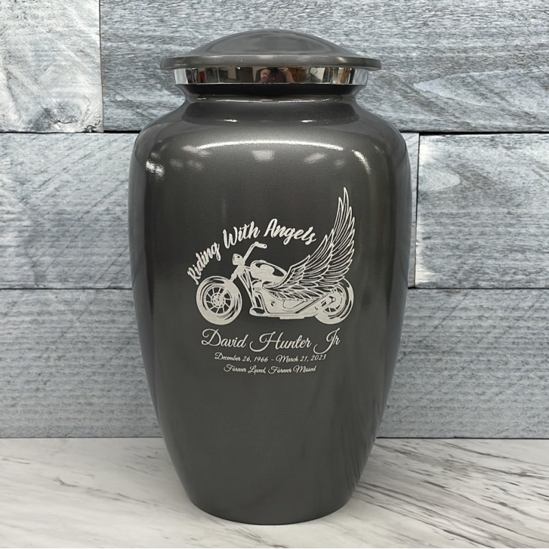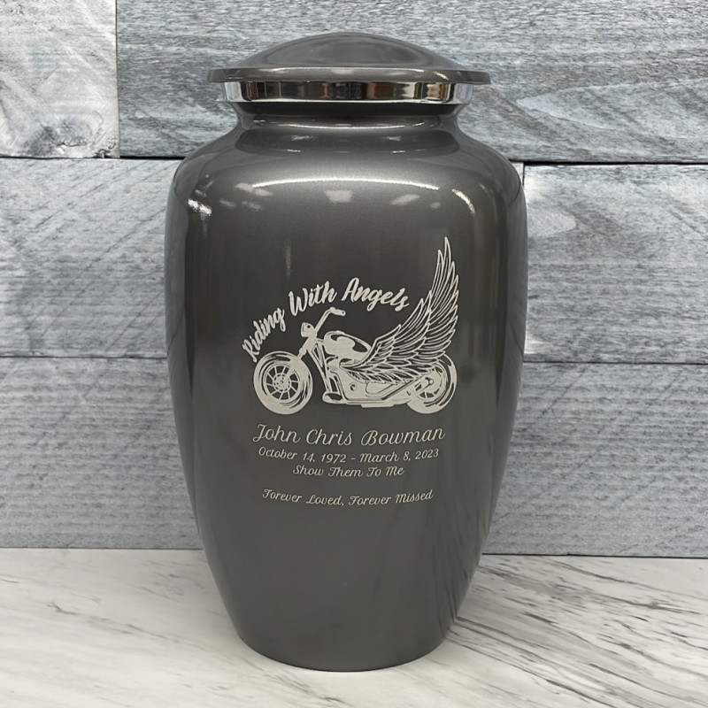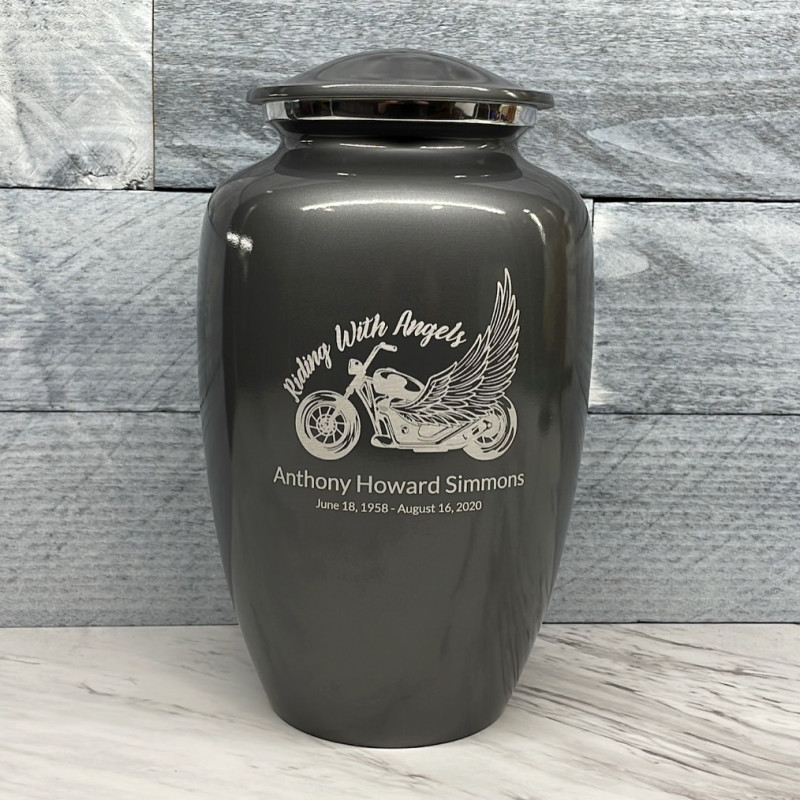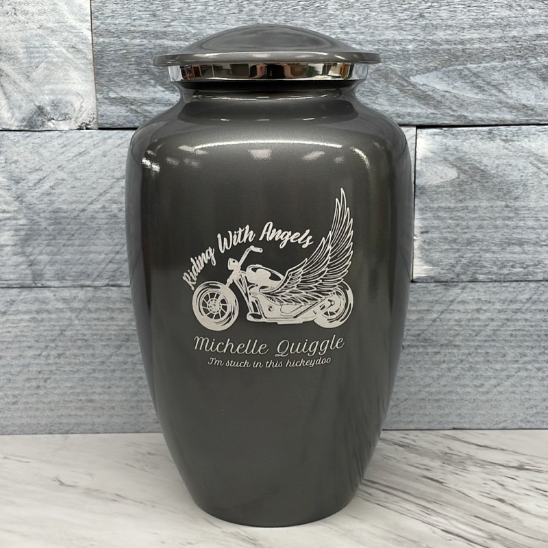 Riding with Angels Motorcycle Cremation Urn - Gunmetal Gray