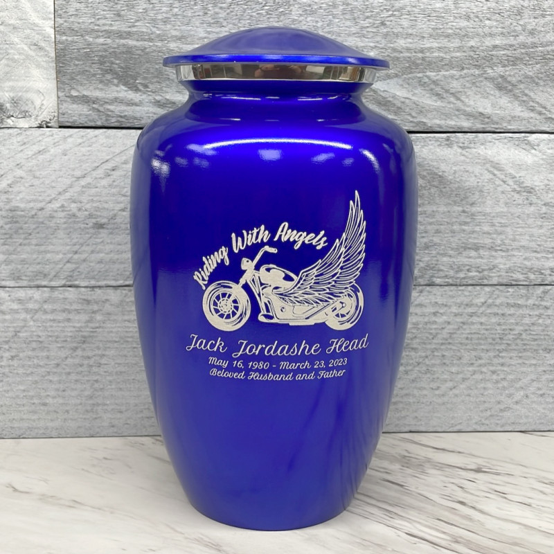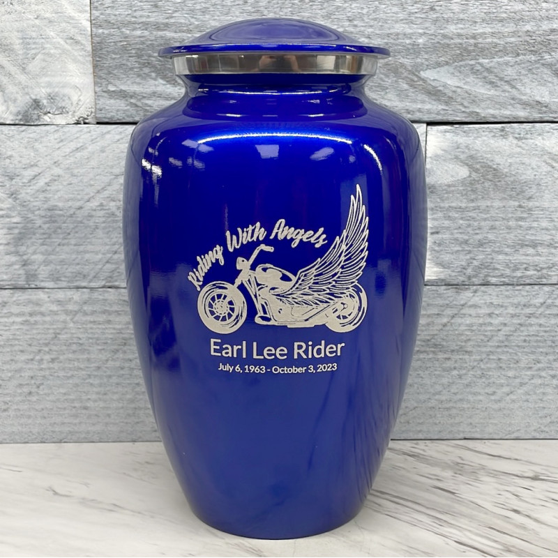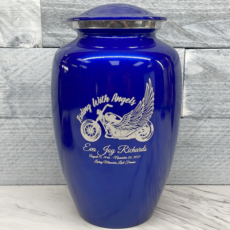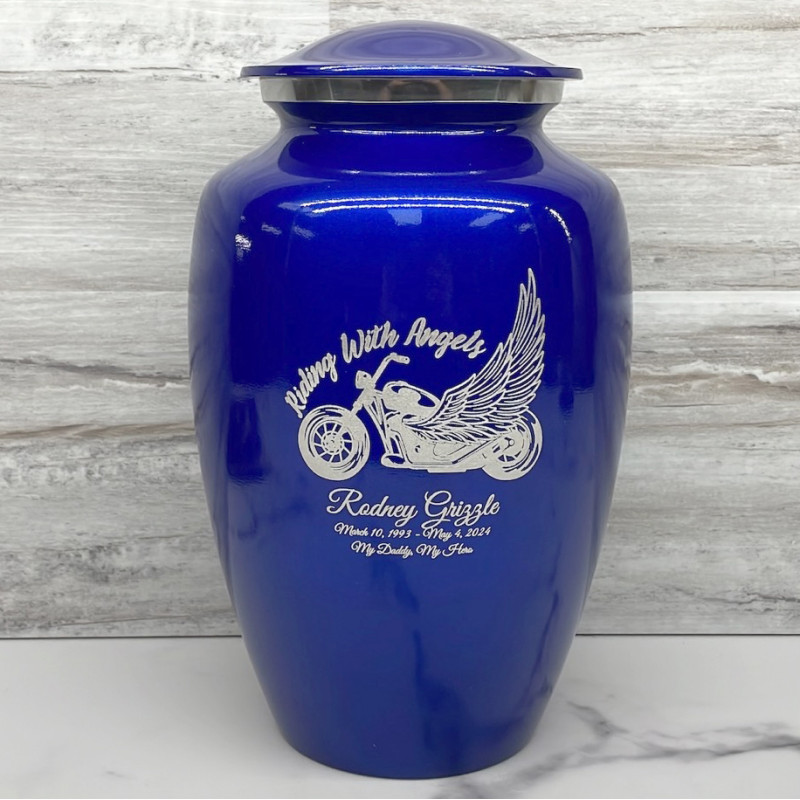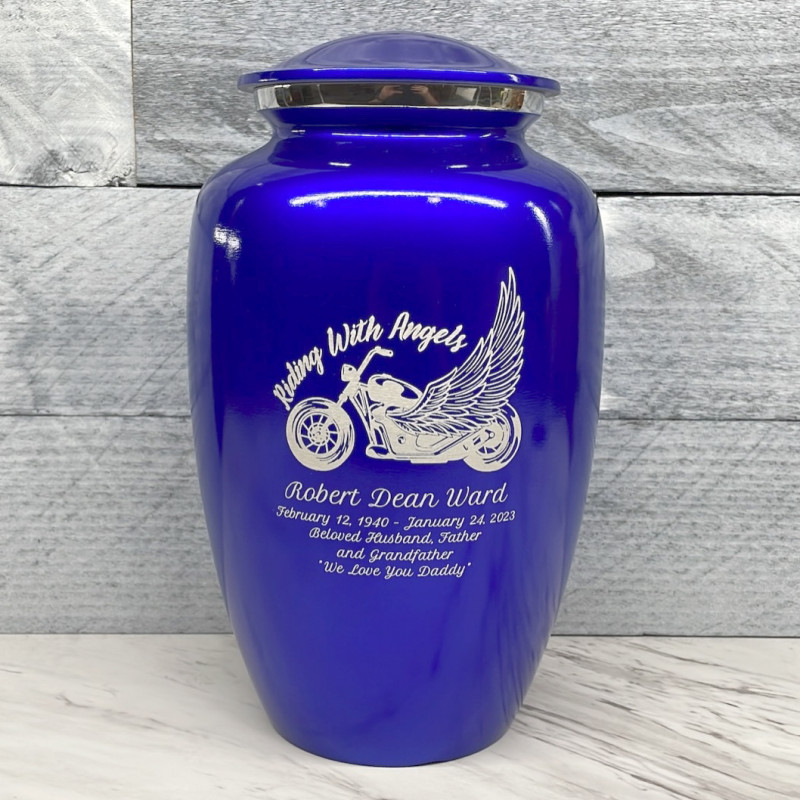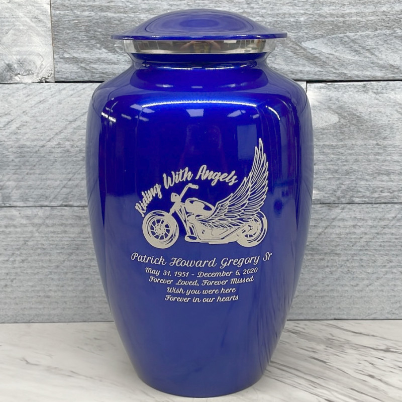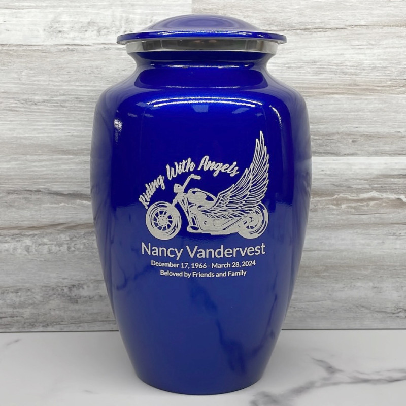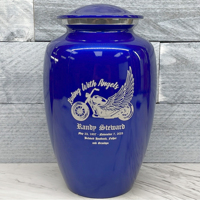 Riding with Angels Motorcycle Cremation Urn - Midnight Blue
