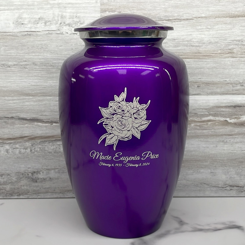 Rose Buds Cremation Urn - Midnight Blue Rose Buds Cremation Urn - Gunmetal GrayRose Buds Cremation Urn - Purple Luster
