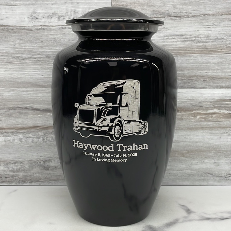 Semi Truck II Cremation Urn - Midnight Blue Semi Truck II Cremation Urn - Gunmetal Gray Semi Truck II Cremation Urn - Purple Luster Semi Truck II Cremation Urn - Shamrock Green Semi Truck II Cremation Urn - Ruby RedSizes