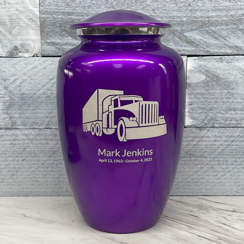 Choose this Purple Luster Semi Truck Cremation Urn for your loved one today.