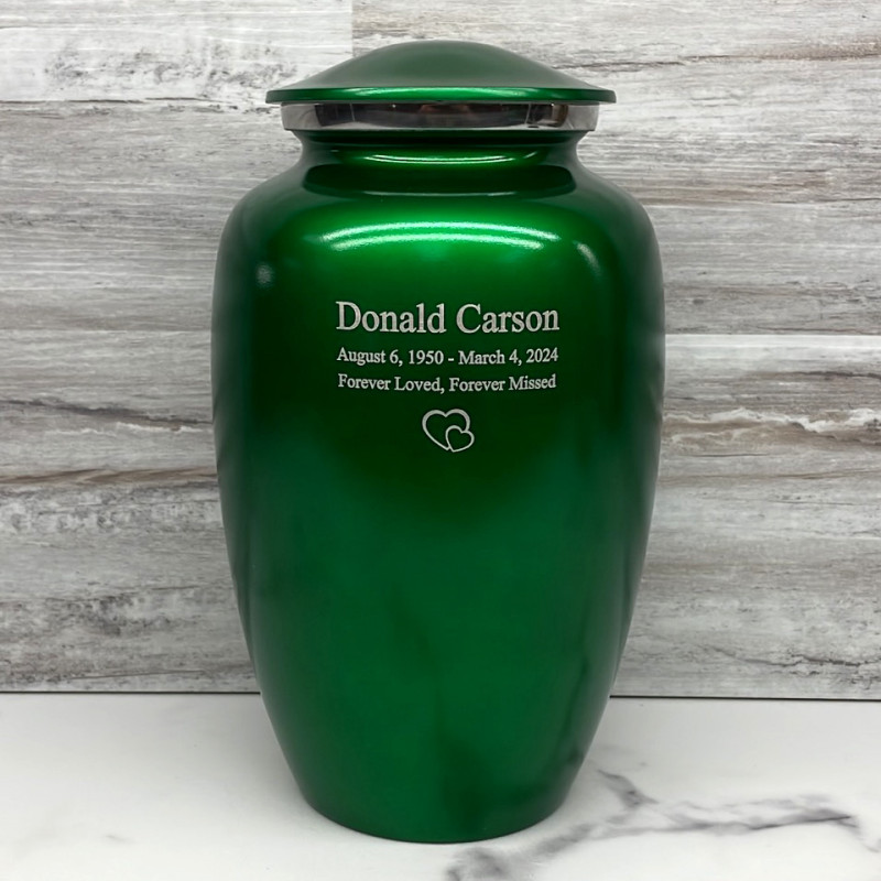 Green is the color of life, renewal, growth, and love. This handcrafted aluminum urn is a meaningful resting place for the everlasting memory of your loved one.