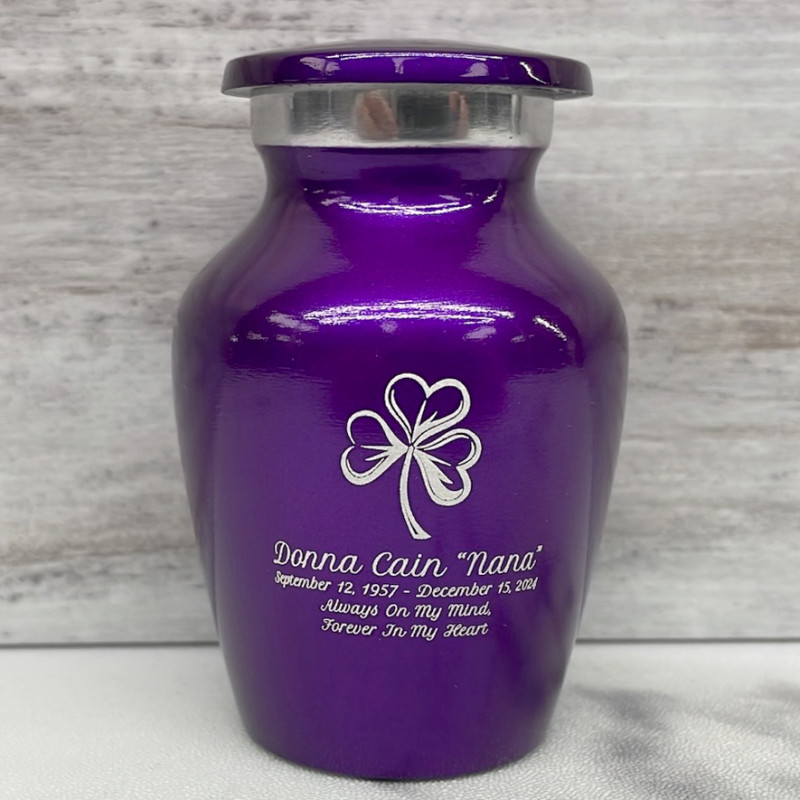 Give everyone in your family a loving memorial with Purple Luster Shamrock Keepsake Urns. An attractive purple finish flecked with silver, it is one of our most popular keepsake urn colors.