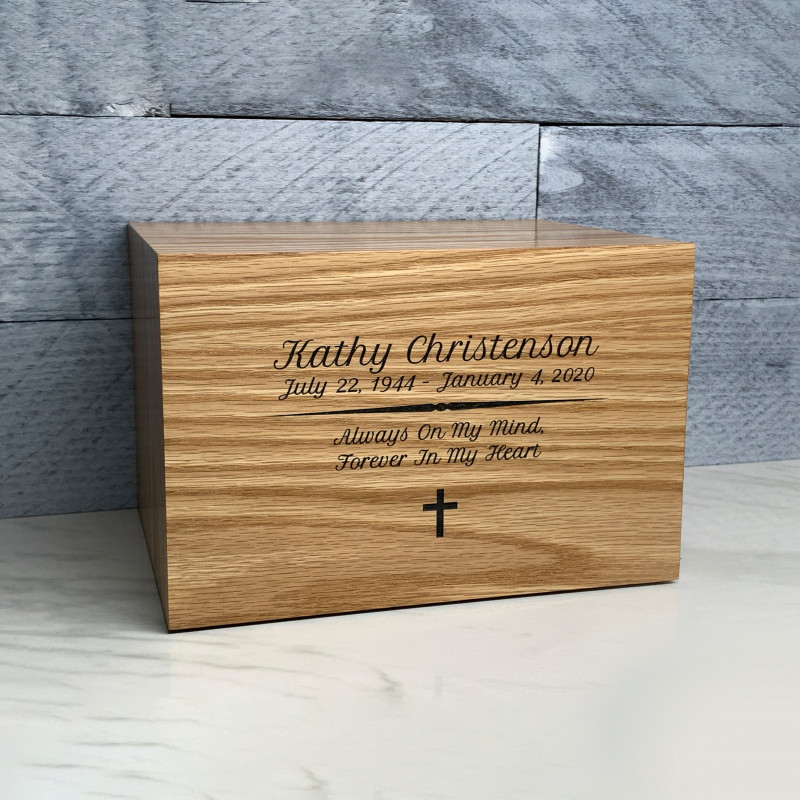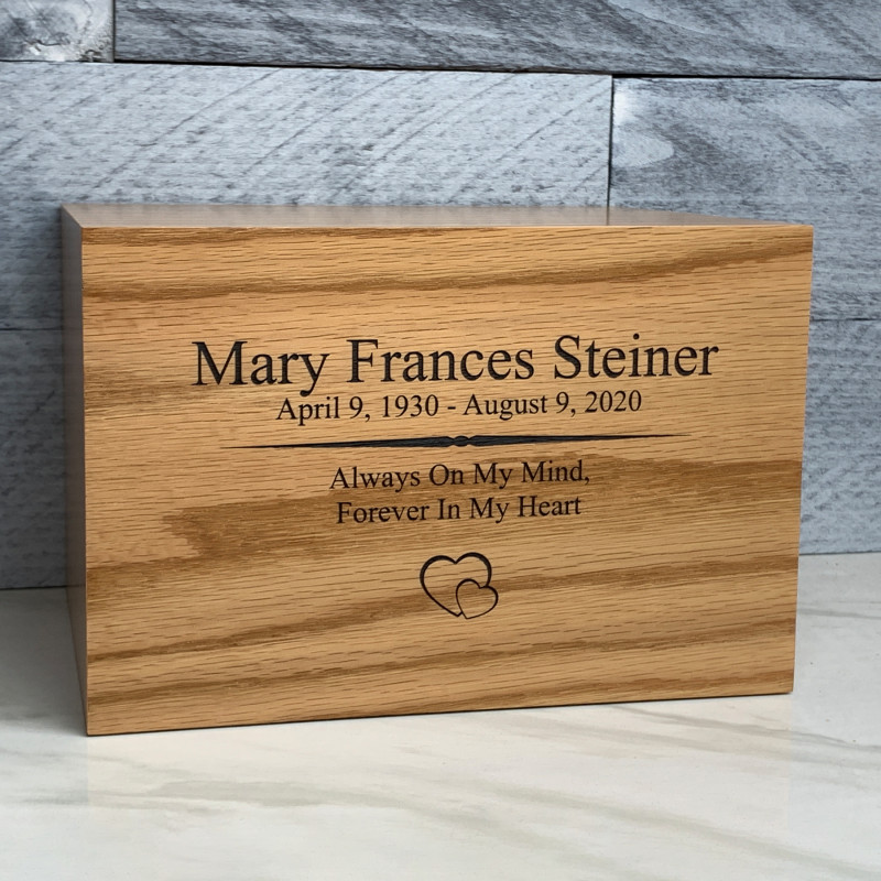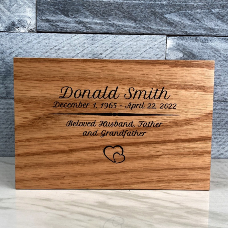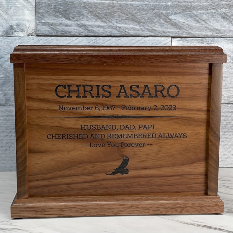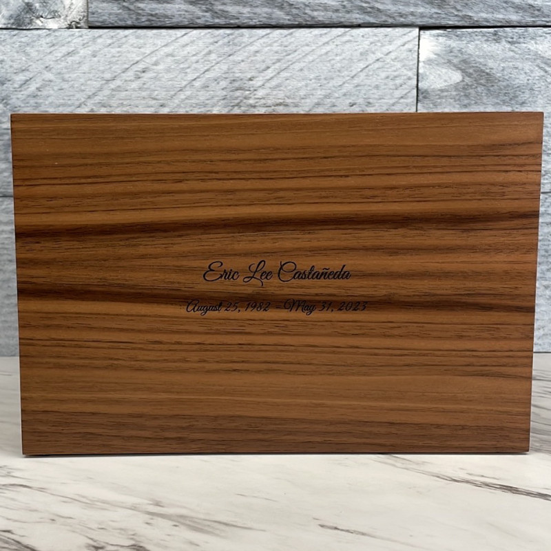 We chose the alder wood urn and customized it with my uncles information. The craftsmanship of this urn goes above and beyond, we were so pleased with the final product! The wood was beautiful and custom lettering was excellent as well. A very nice choice for my beloved uncle.