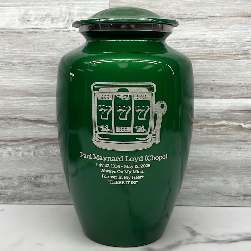 Slot Machine Cremation Urn - Midnight Blue Slot Machine Cremation Urn - Gunmetal Gray Slot Machine Cremation Urn - Purple LusterSizes