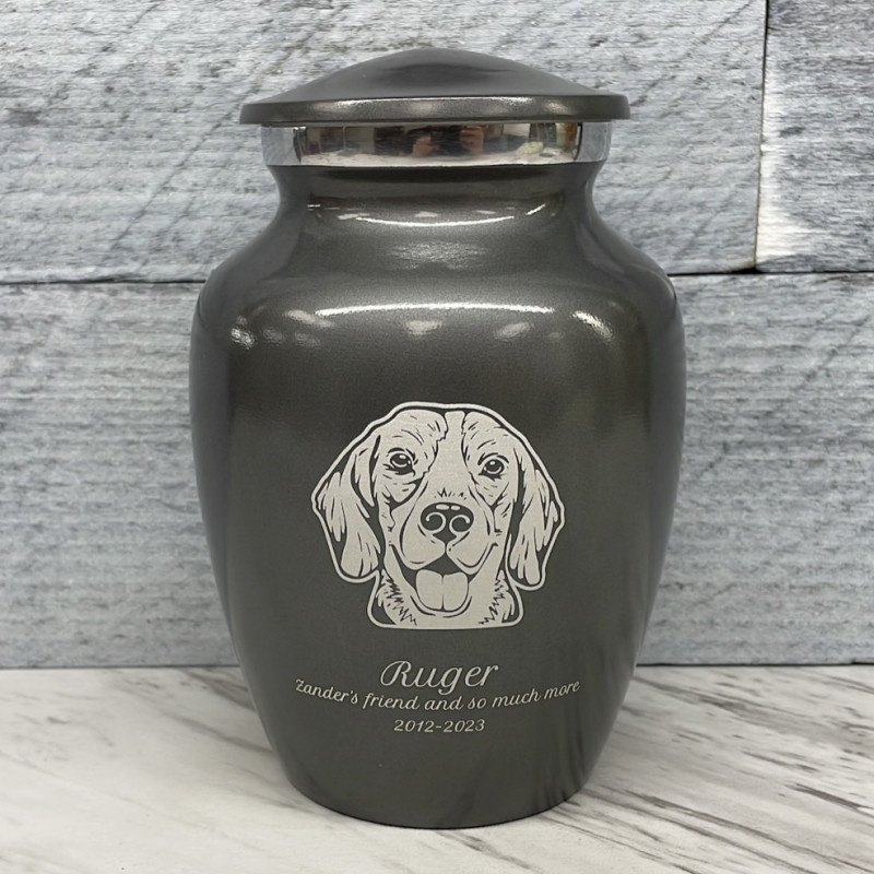 Small Beagle Dog Cremation Urn - Gunmetal Gray