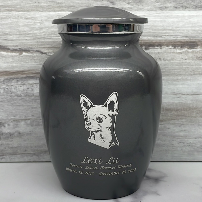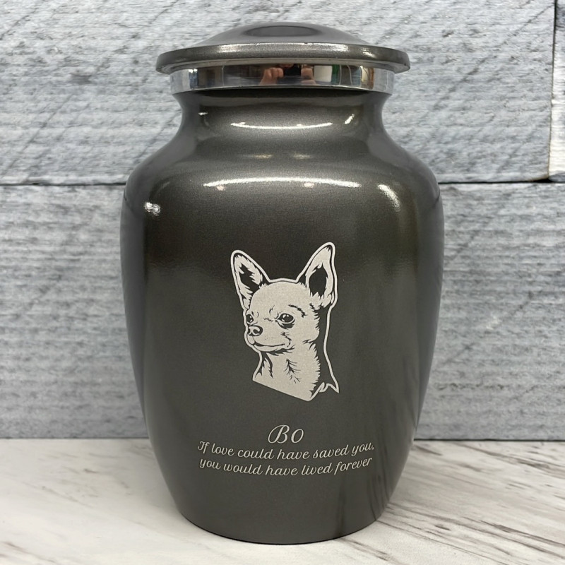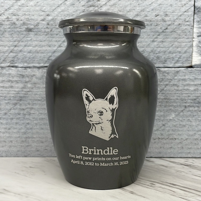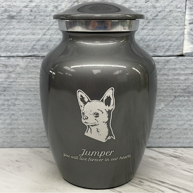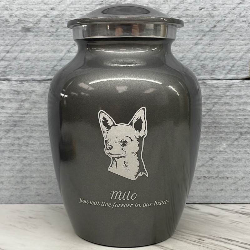 Small Chihuahua Dog Cremation Urn - Gunmetal Gray