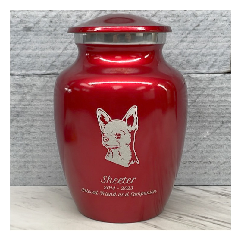 Small Chihuahua Dog Cremation Urn - Ruby Red