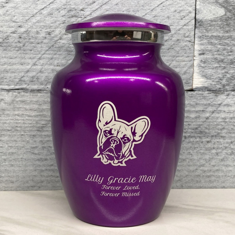 Small French Bulldog Dog Cremation Urn - Purple Luster