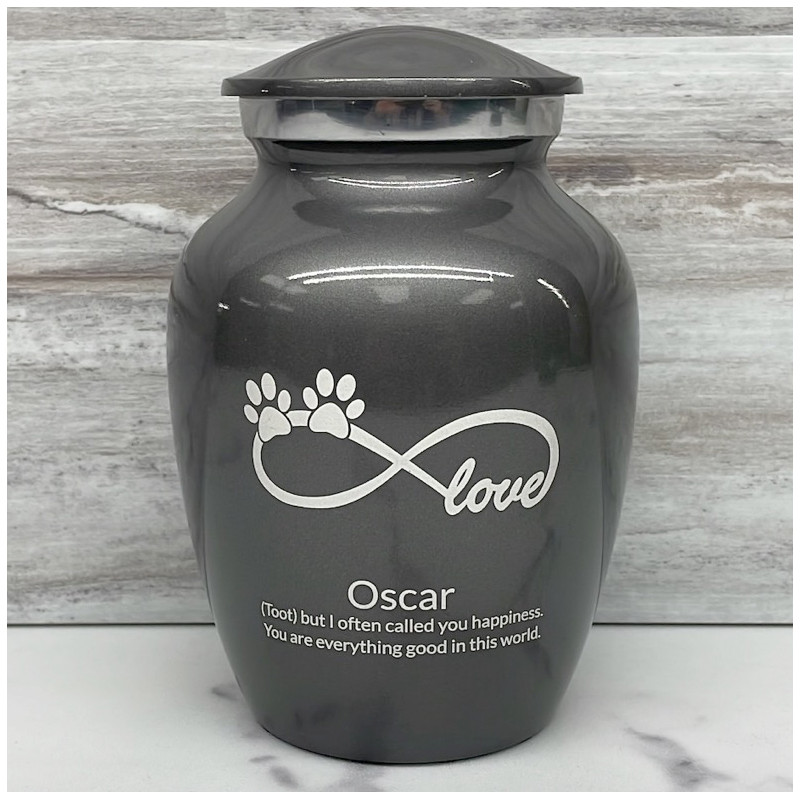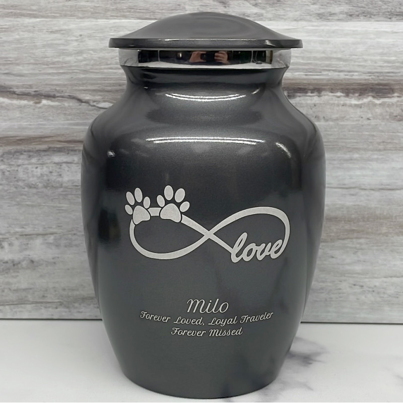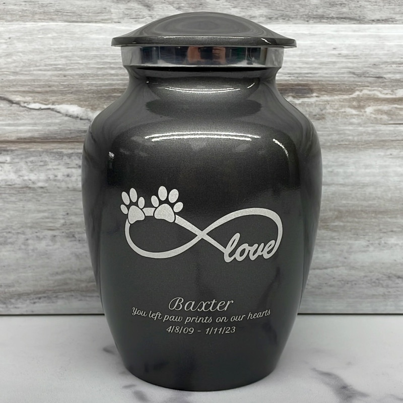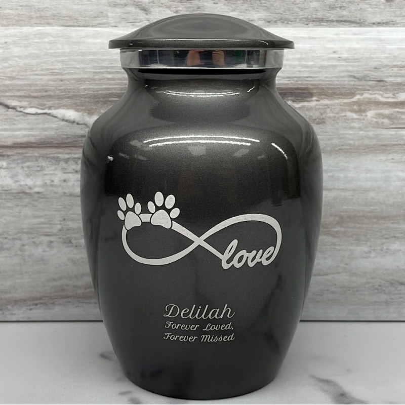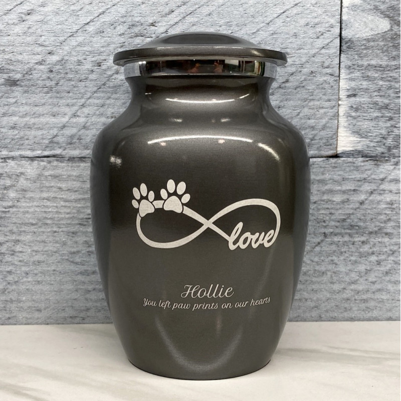 Small Infinite Love Pet Cremation Urn - Gunmetal Gray